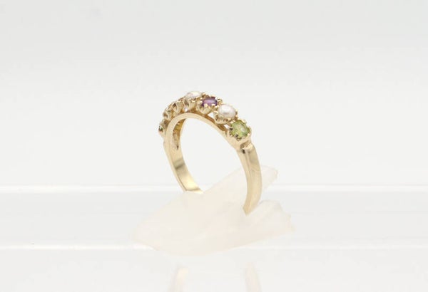 Vintage ring met peridot,amethist en parel. Maat: 17.5. 2021/617.