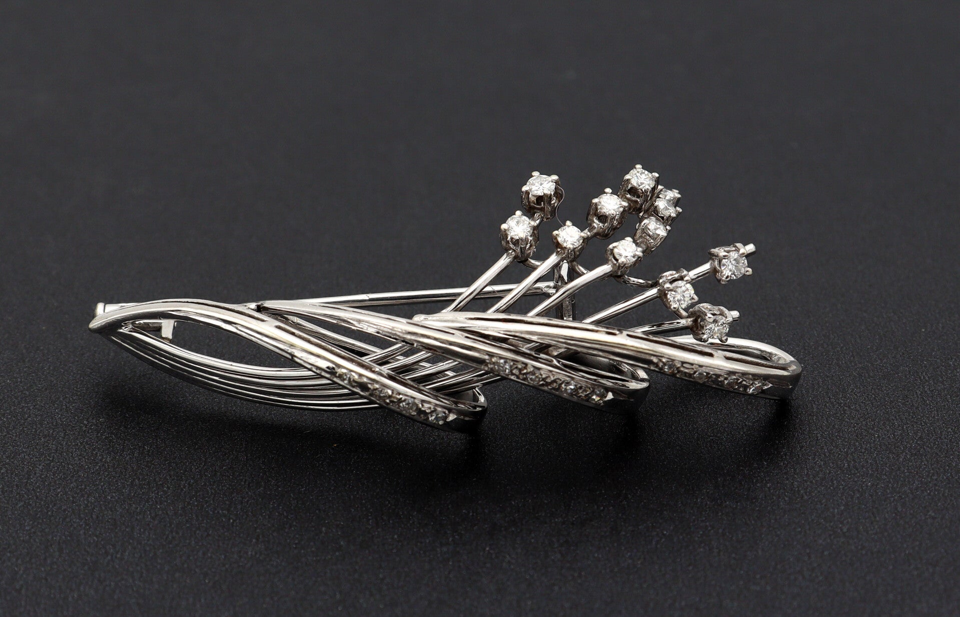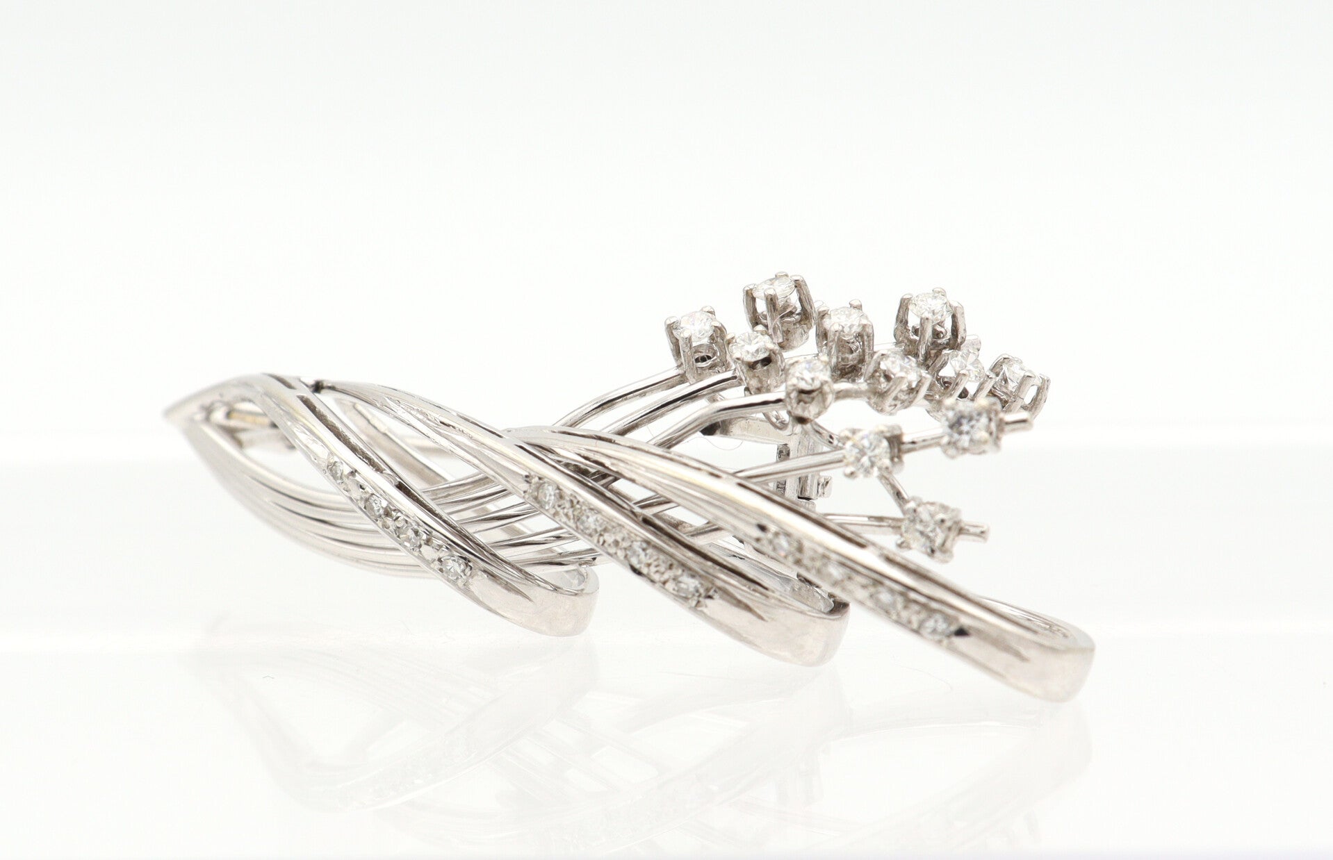Wit gouden antieke broche met 28 x diamanten (Ca:0.64 ct). 2021/625