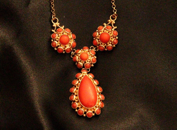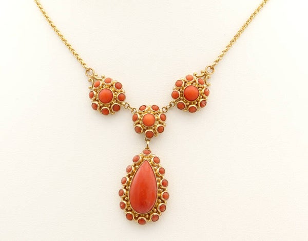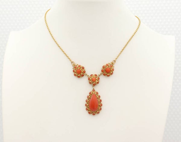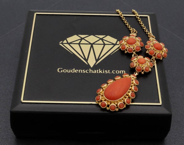 Antieke gouden jasseron ketting met bloedkoraal hanger. 2021/692.