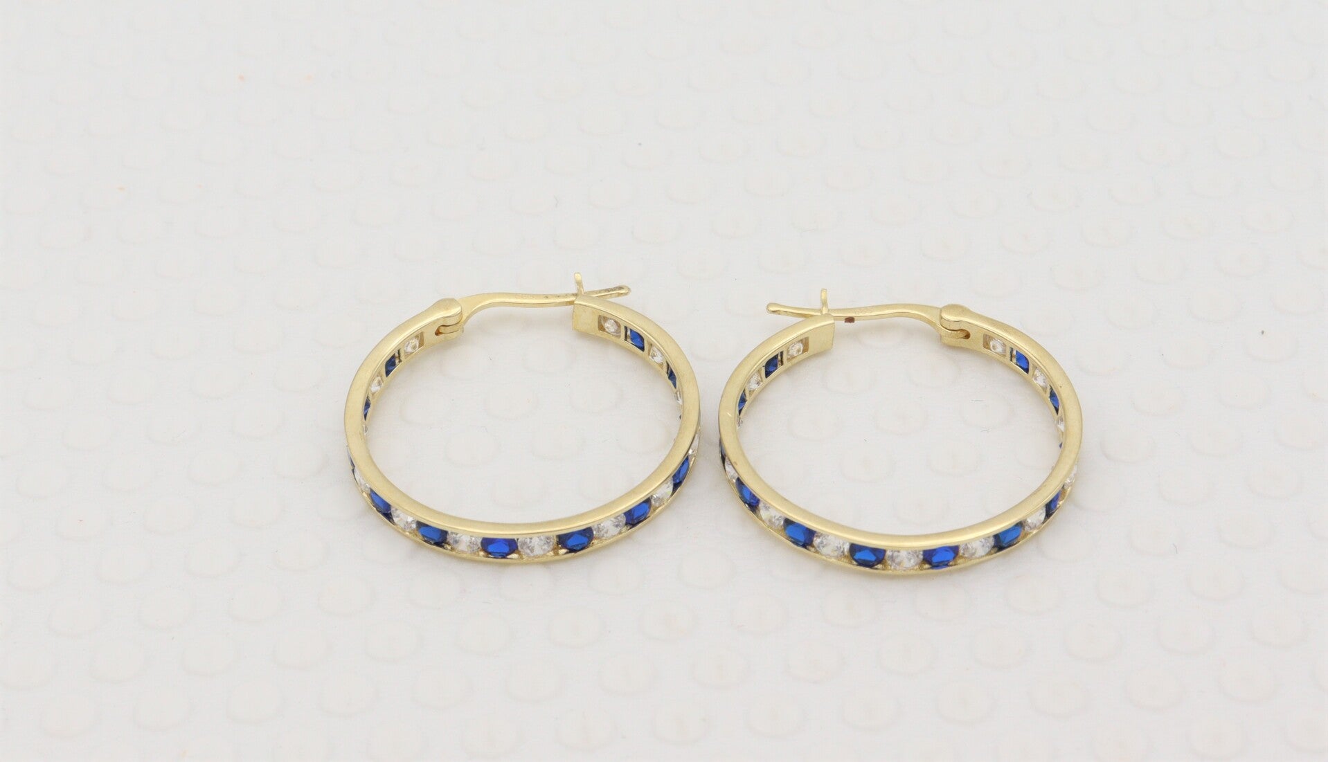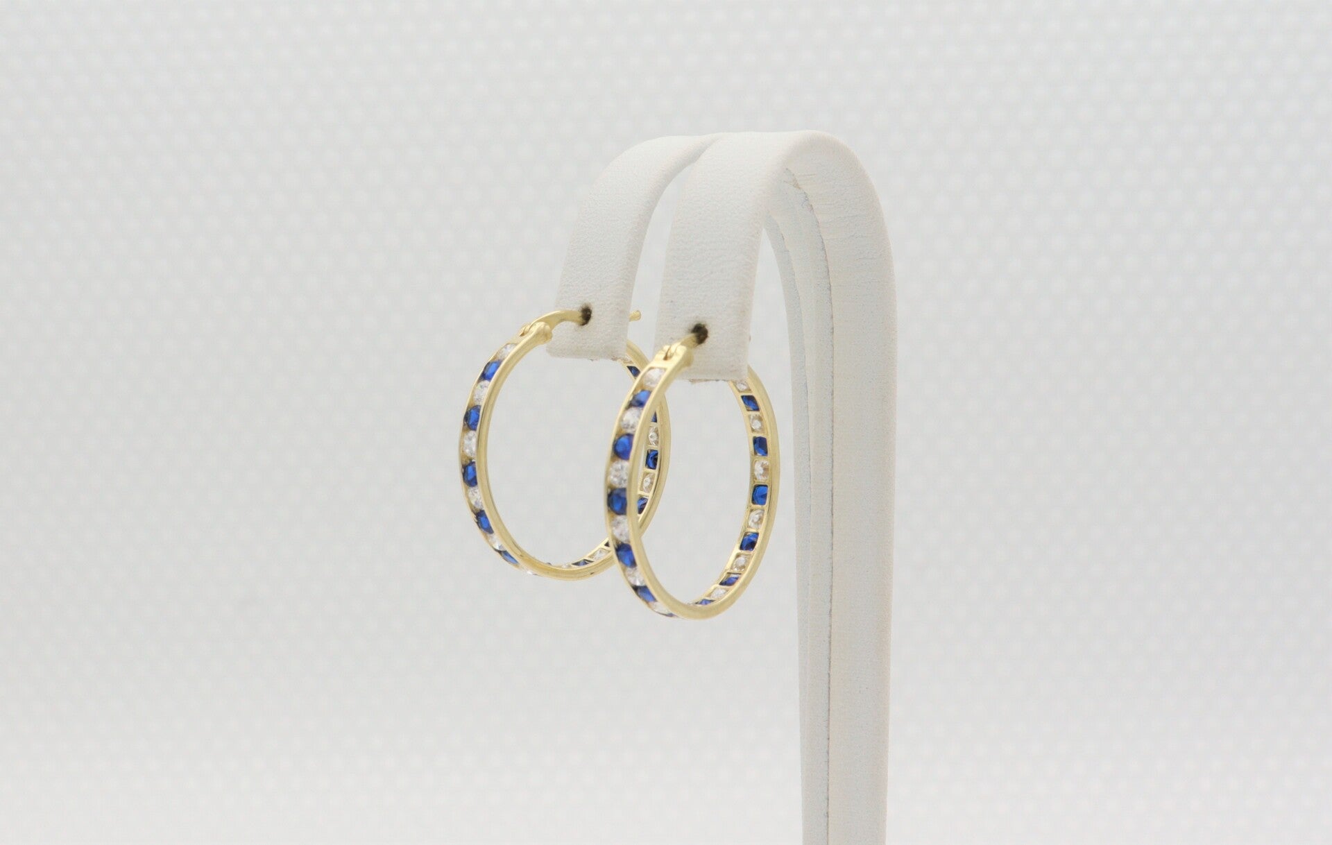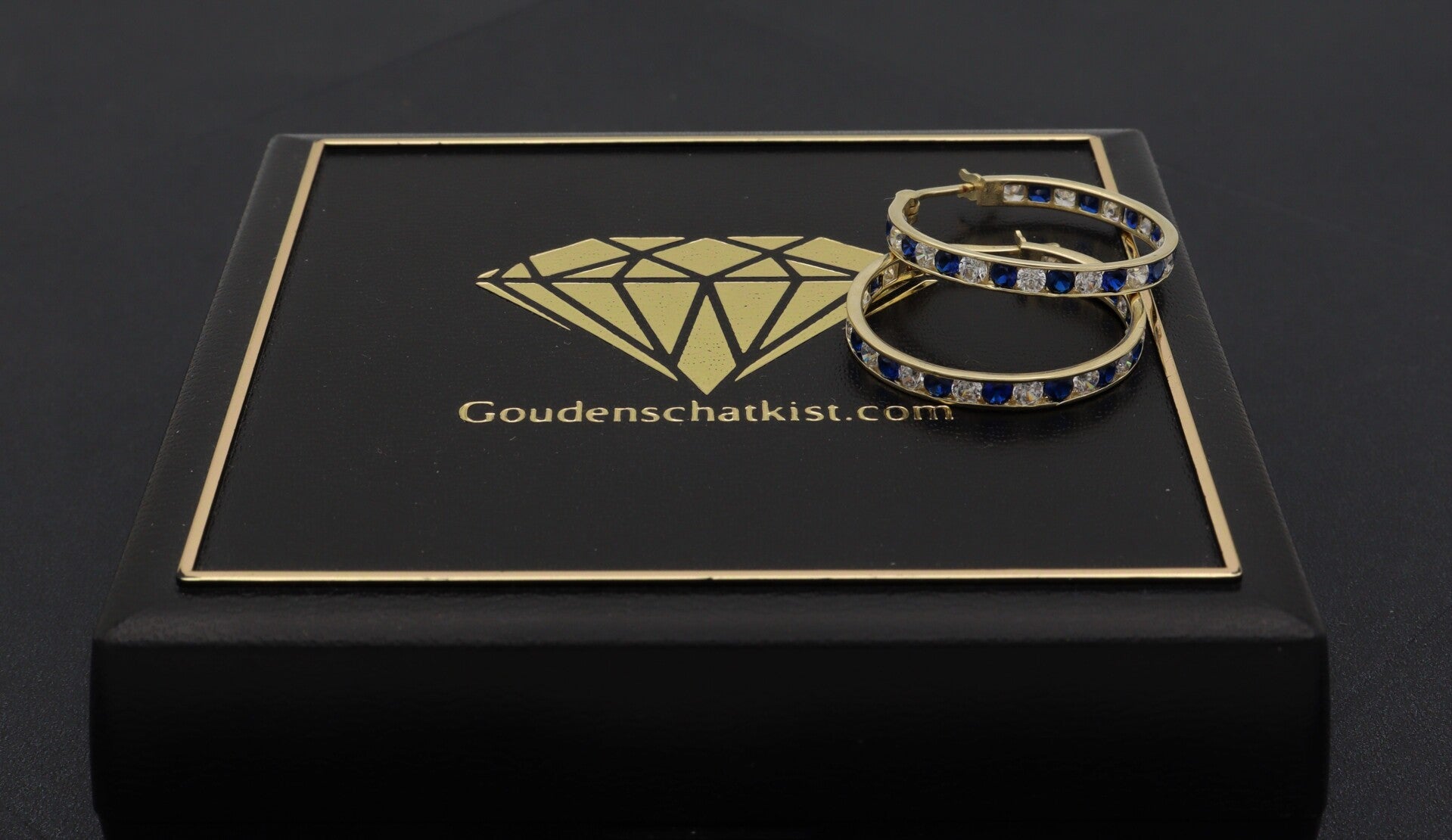 Gouden oorbellen met blauwe saffier en witte saffier. 2022/07