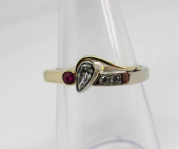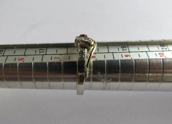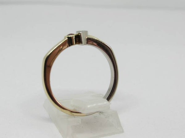 14 Karaat. Ring met diamant en robijn. Maat: 17.8. Nr: 19/A167.
