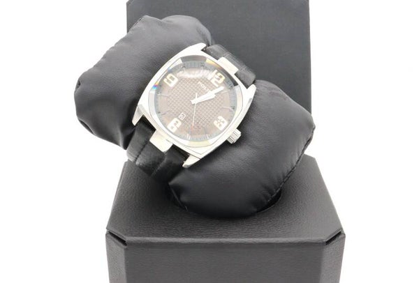 Donkere wijzerplaat met streepindex en Arabische cijfers.