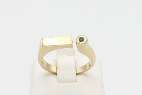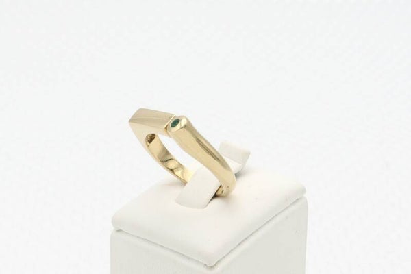 Gouden vintage design ring met smaragd. Maat: 17.5. 2020/387.