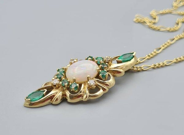 Gouden ketting met gouden hanger met opaal, smargd en diamant. 2022/66.