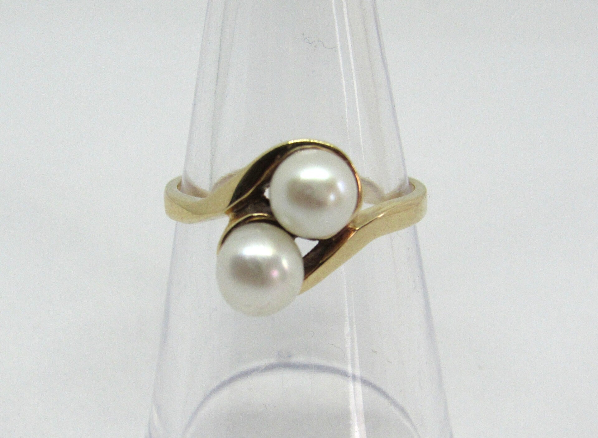 14 Karaat. Ring met 2x parel. Maat: 18.2. Nr: 19/A179.