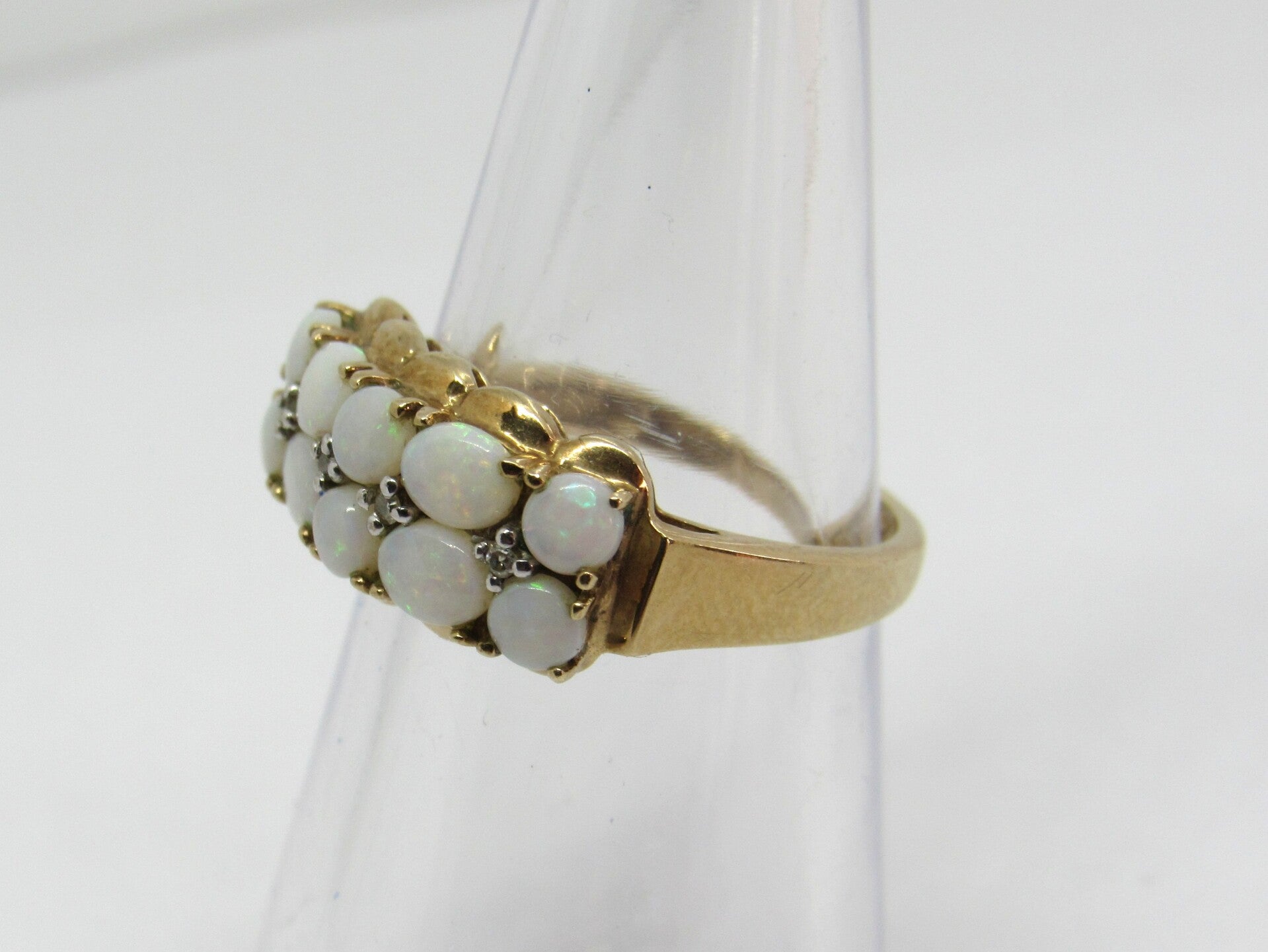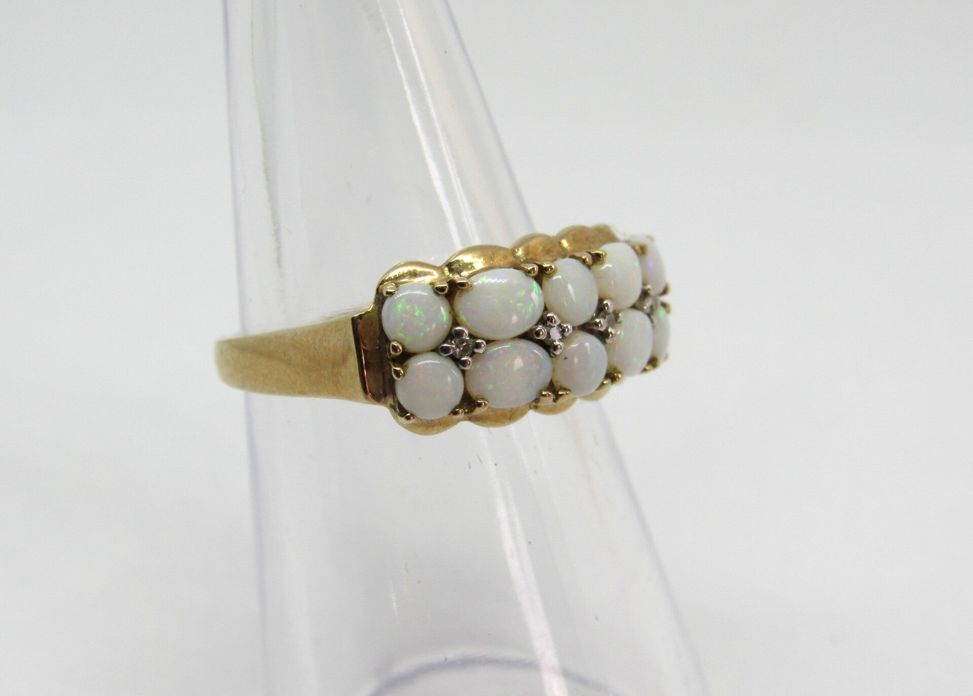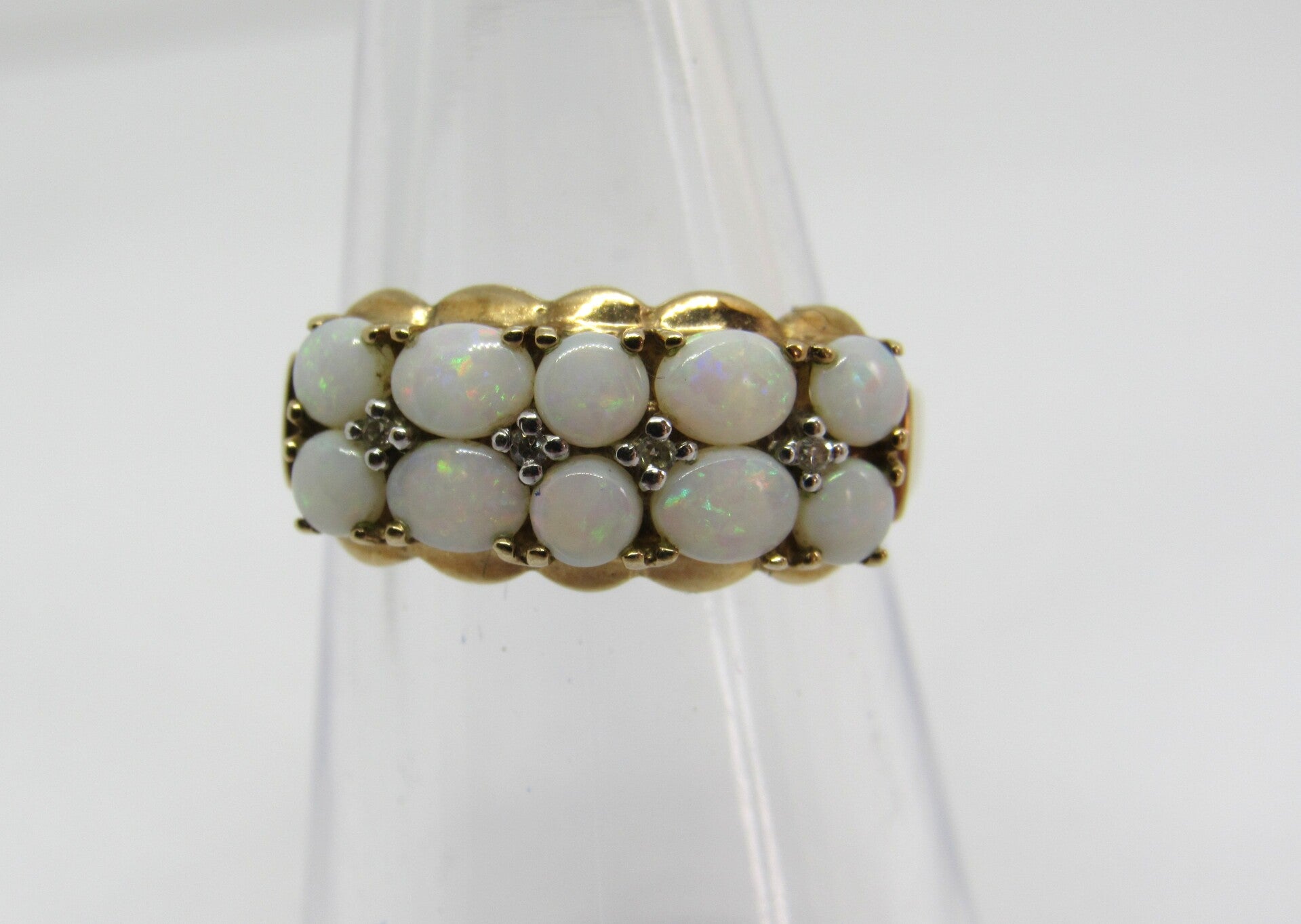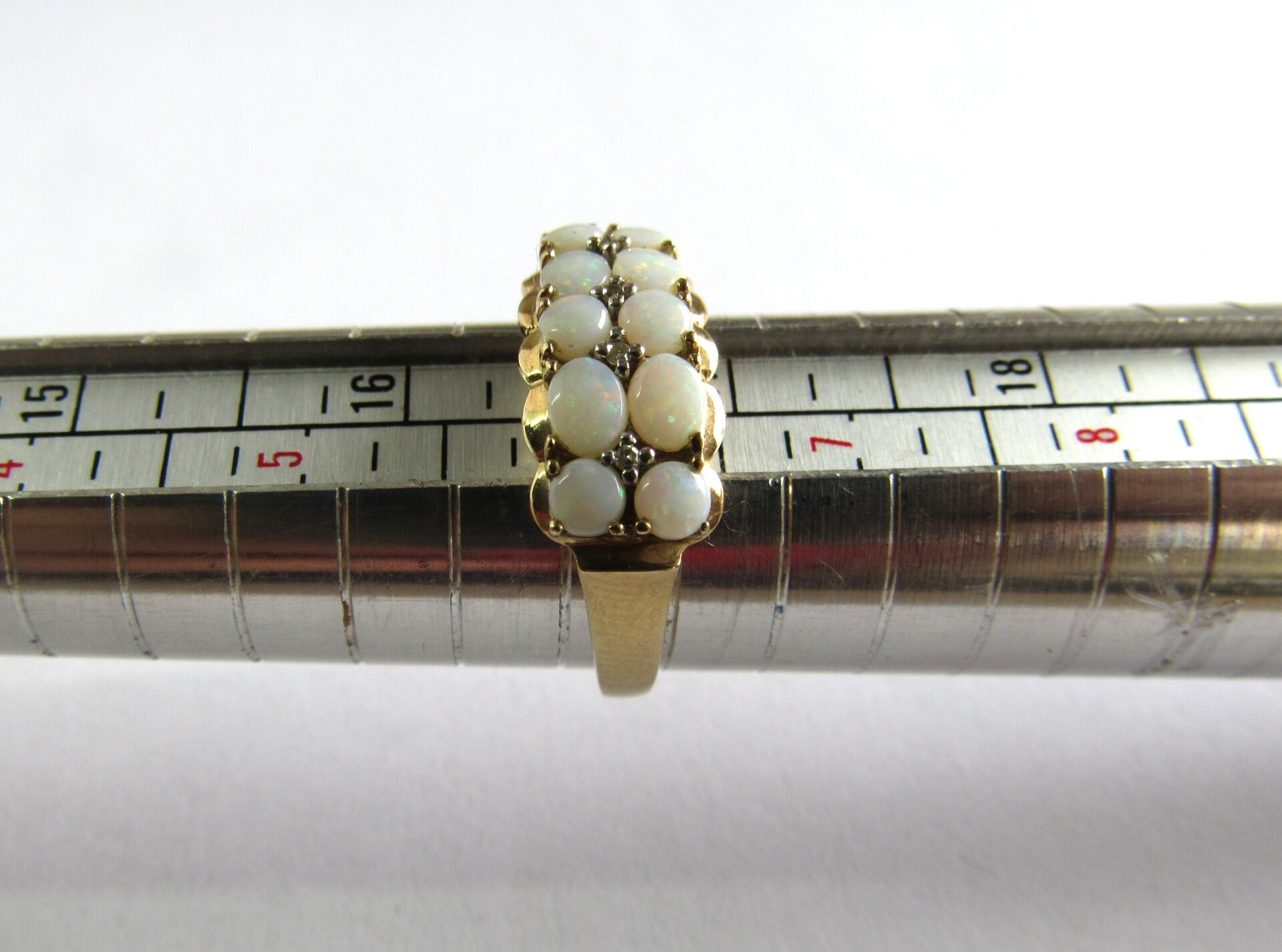 9 Karaat. Ring met 10x opaal en 4x diamant. Maat: 16.5. Nr: 19/A 180.