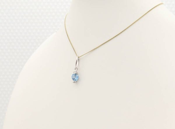 Vintage wit gouden hanger met aquamarijn en zirkonia. 2022/162.