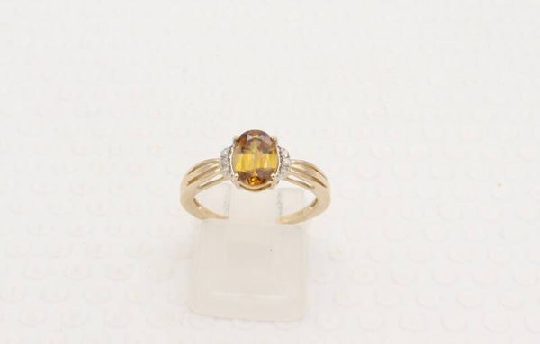 Vintage ring met citrien en diamant. Maat: 16.5. 2022/214.
