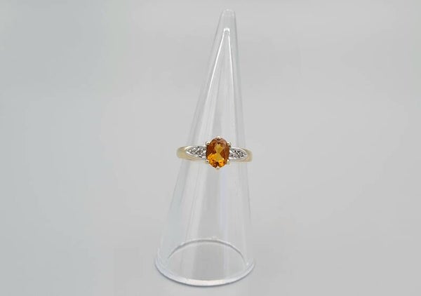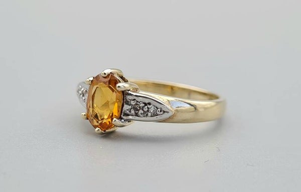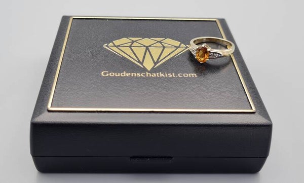 Vintage ring met edelsteen citrien en diamant. 2022/297.