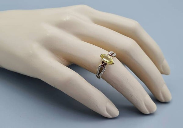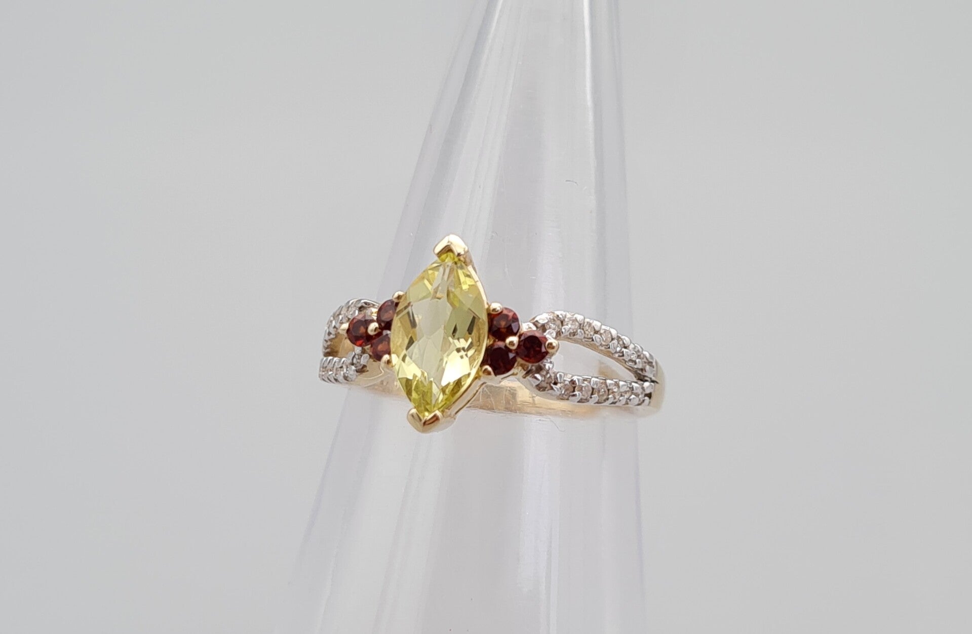 Vintage ring met peridot, granaat en diamant. Maat: 17.2. 2022/346.
