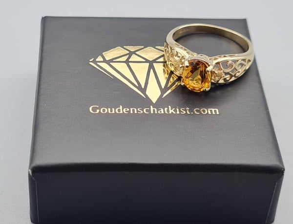 Vintage ring met citrien. Maat: 17.25. 2022/357.