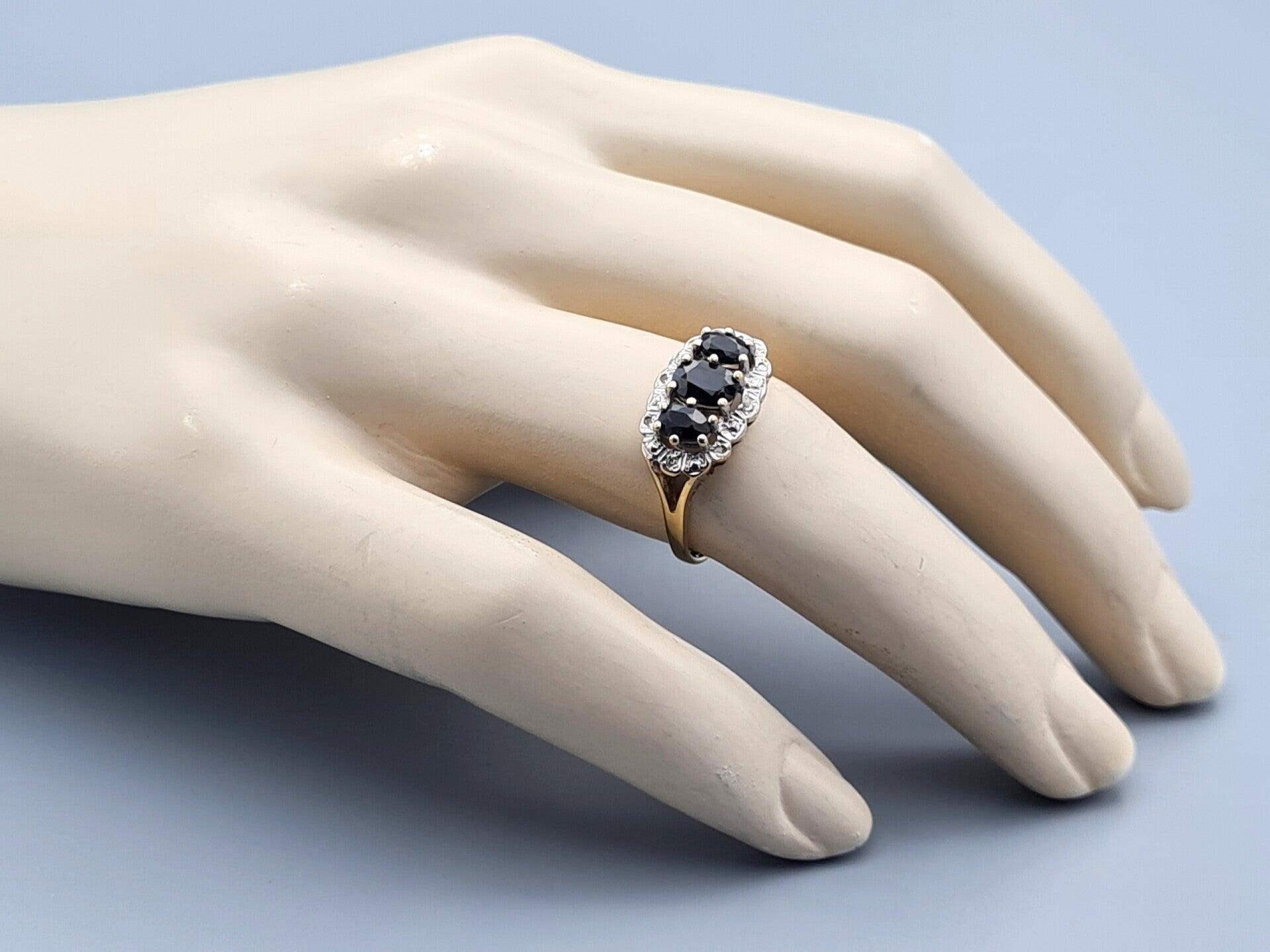 Vintage ring met edelsteen saffier en diamant. 2022/368.