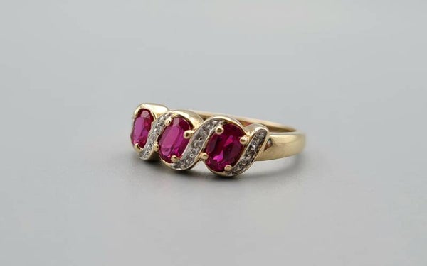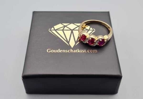 Vintage ring met robijn en diamant. Maat: 16.5. 2022/371.