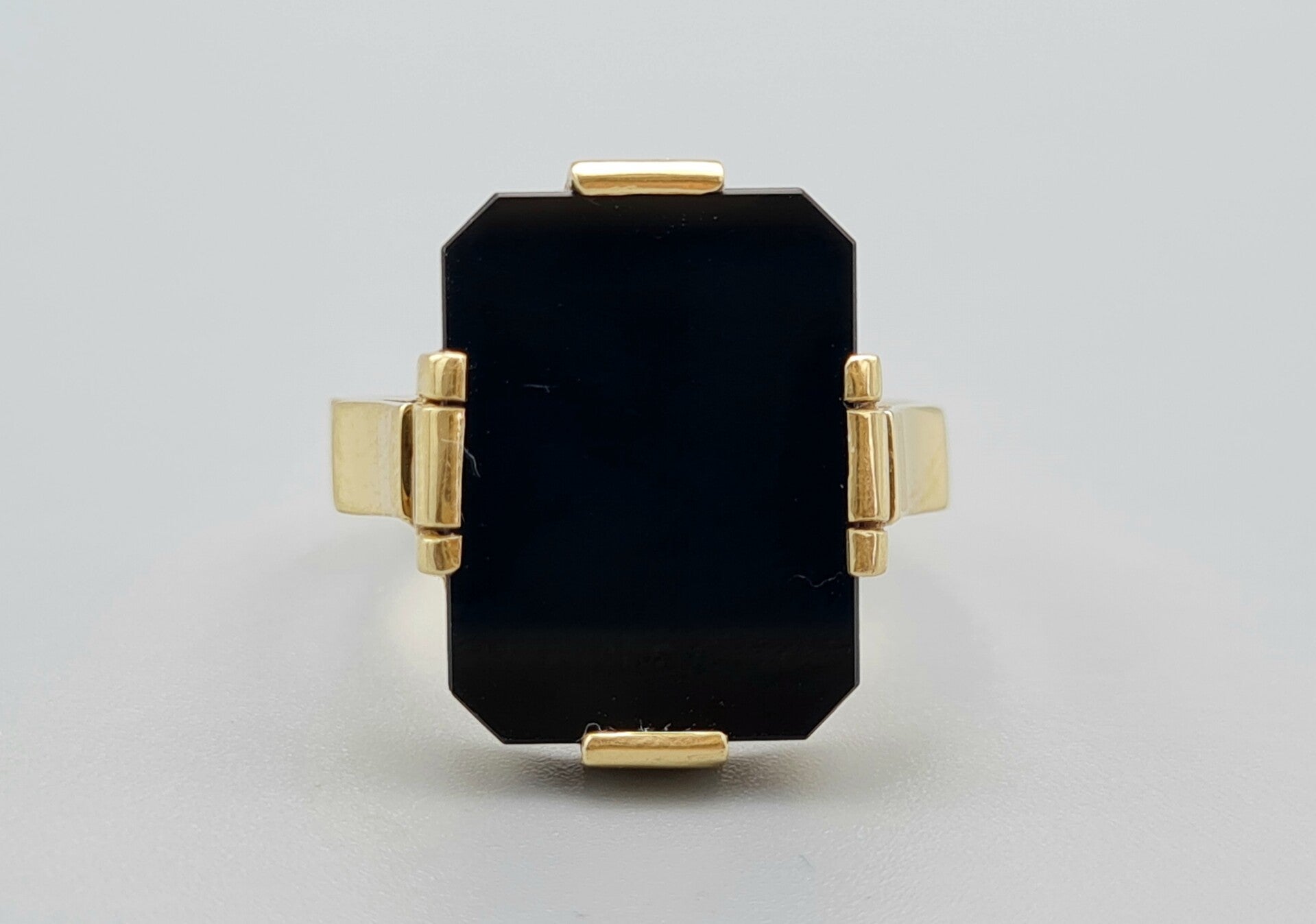 Gouden Art Deco ring met onyx. Maat: 18.1. 2022/405.