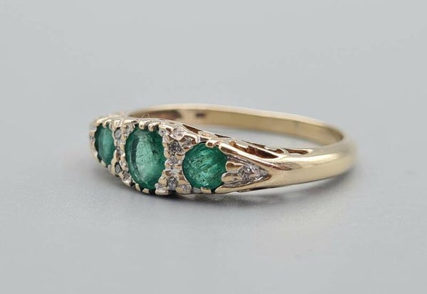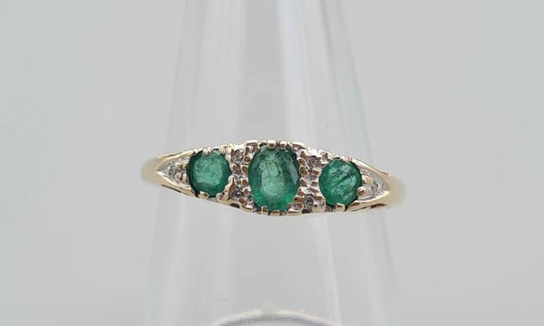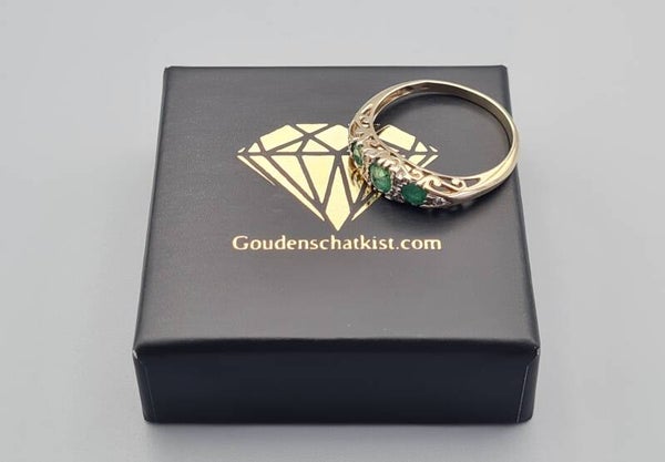 Vintage ring met smaragd en diamant. Maat: 19.1. 2022/422.