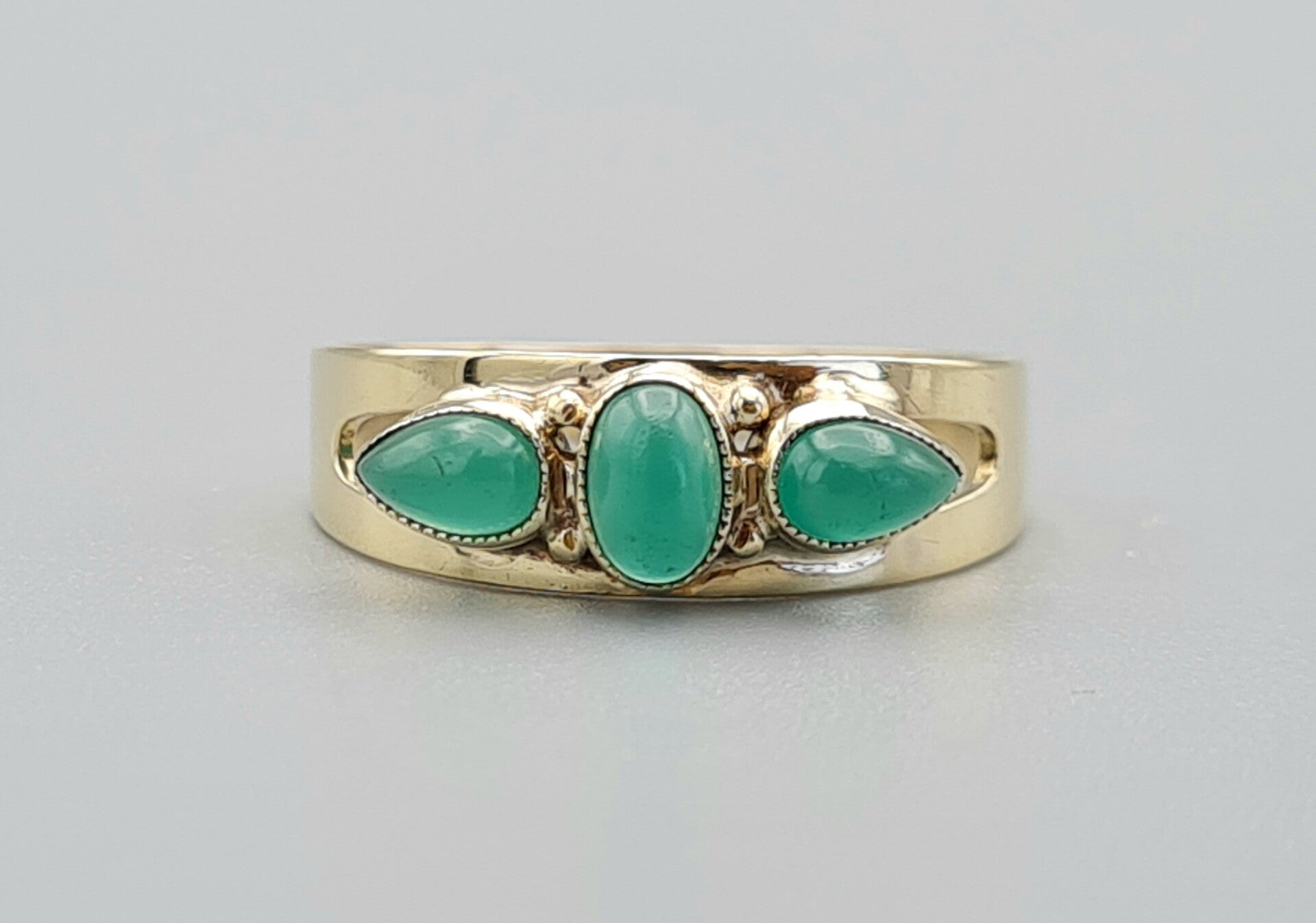 Gouden vintage ring met groene onyx. Maat: 17.7. 2022/440.