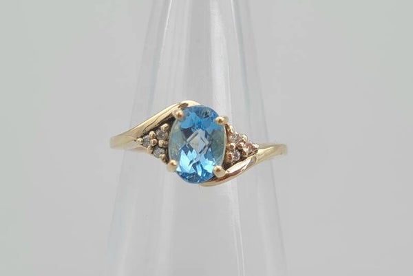 Vintage ring met edelsteen topaas en diamant. 2022/482.