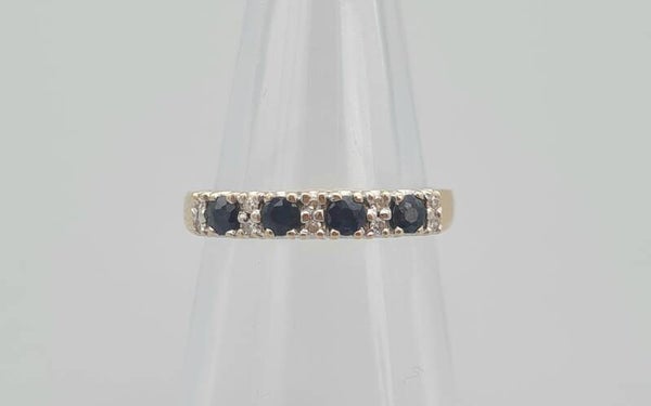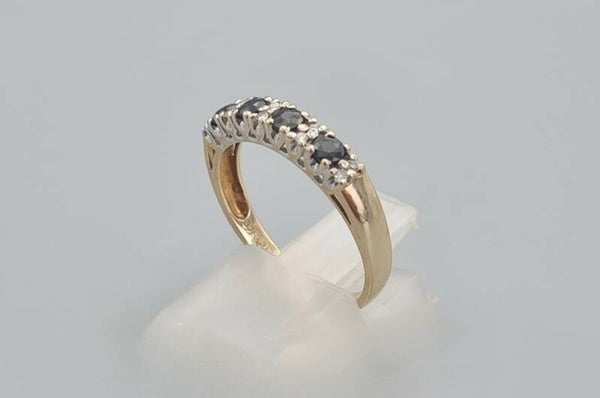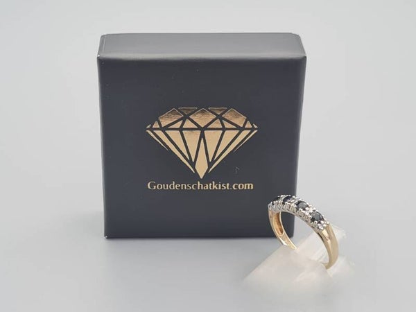 Vintage aanschuifring met saffier en diamant. 2022/487