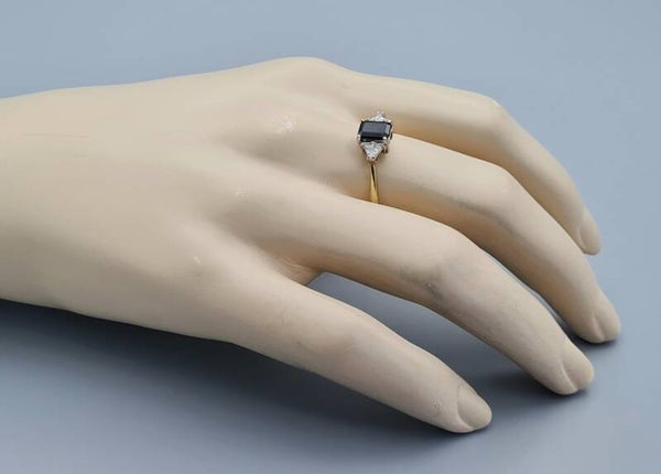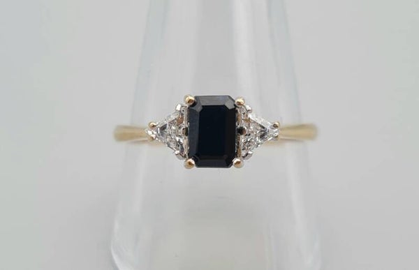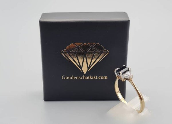 Vintage ring met saffier en zirkonia. Maat: 20.25. 2022/507.