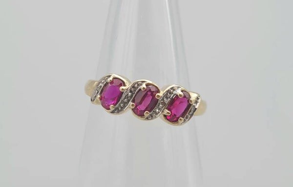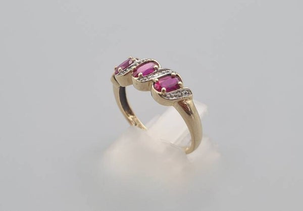 Vintage ring met edelsteen robijn en diamant. 2022/529.