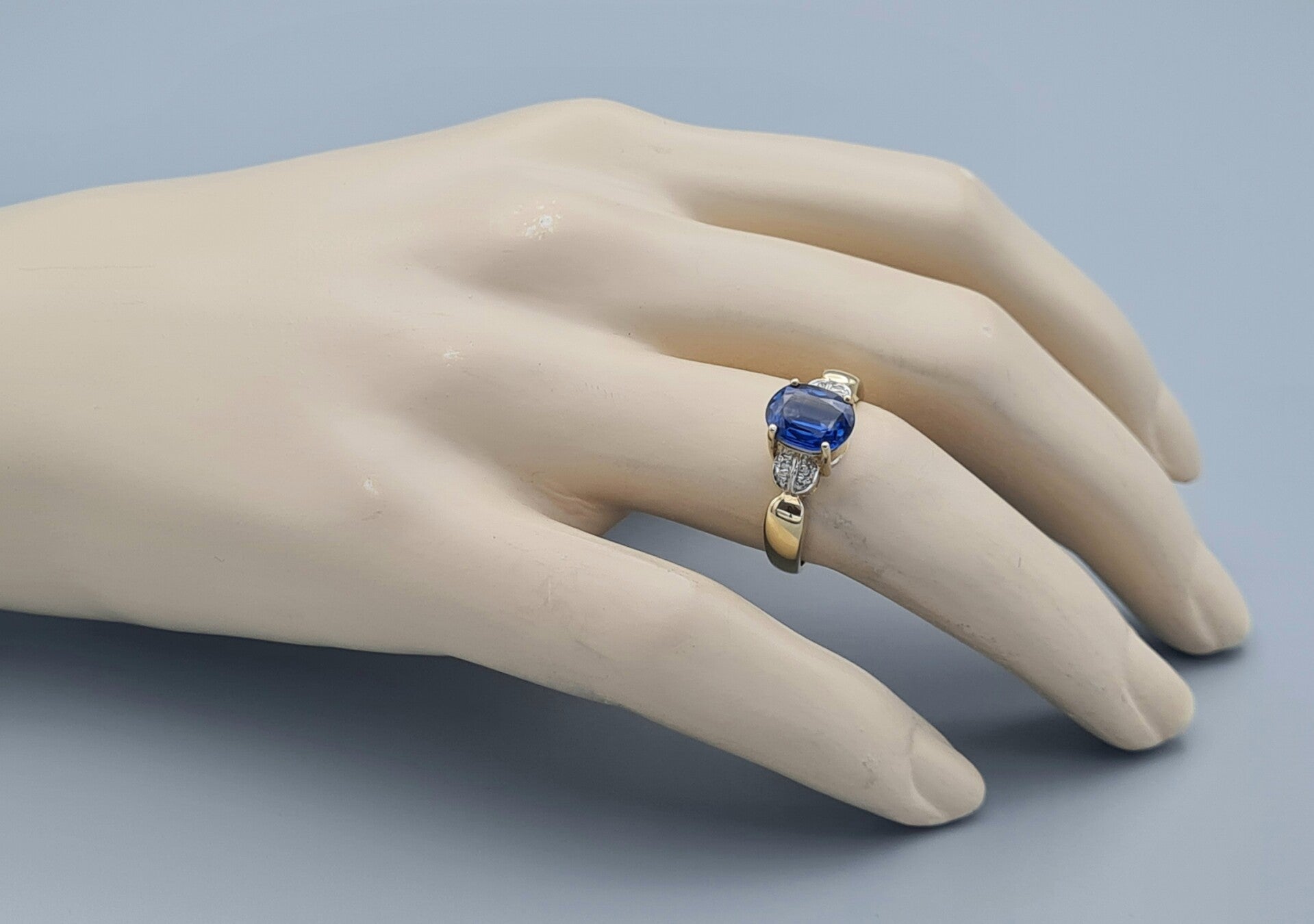 Vintage ring met edelsteen kyaniet en diamant. 2022/532.