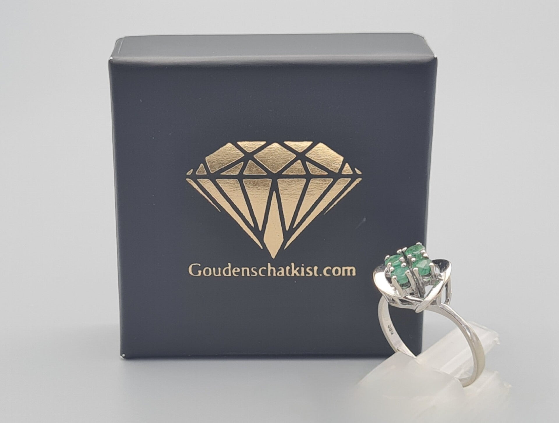 Vintage ring met smaragd. Maat: 17.25. 2022/535.