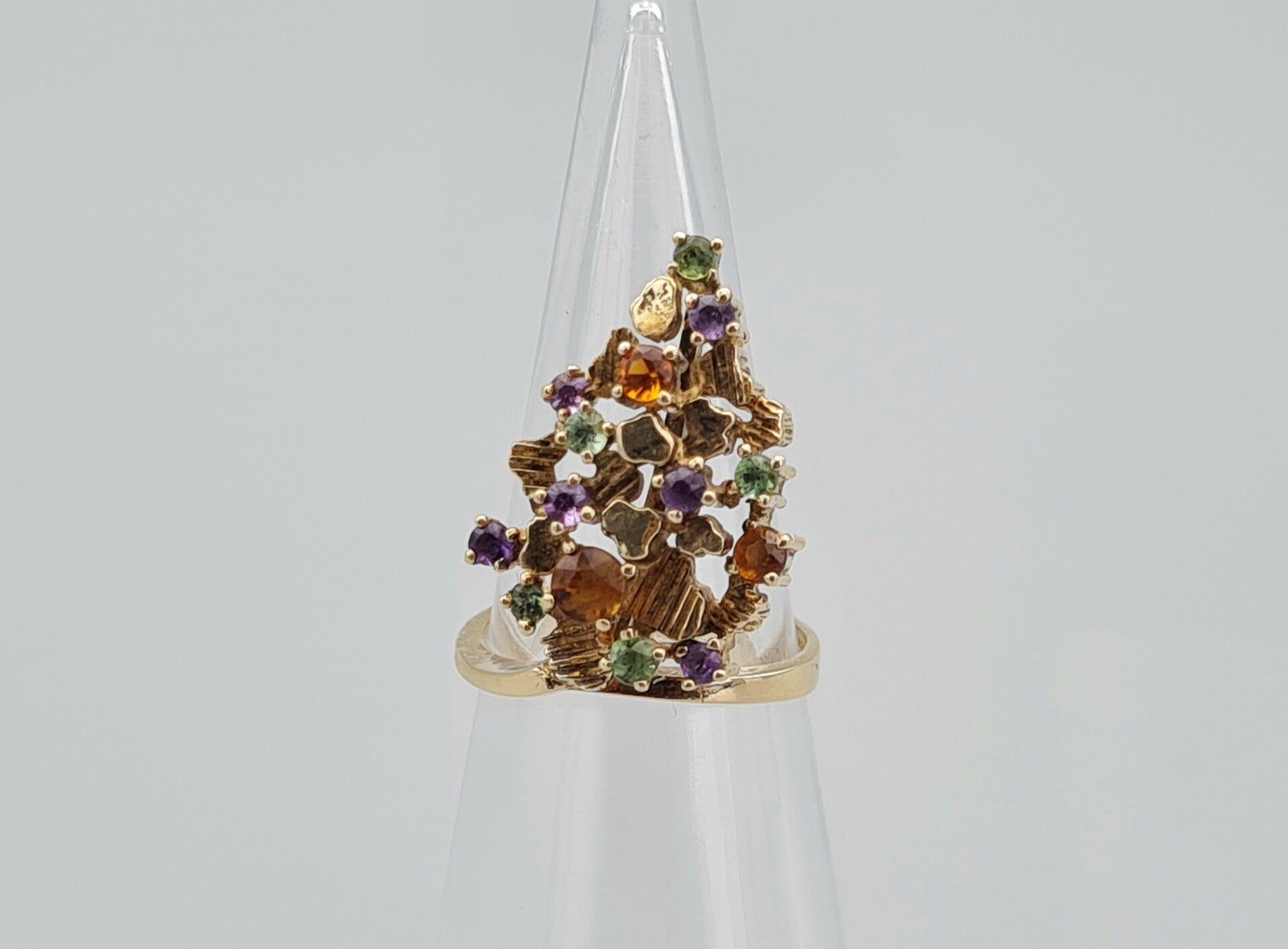 Gouden vintage ring met toermalijn,citrien en amethist.. Maat: 15.8. 2022/555.