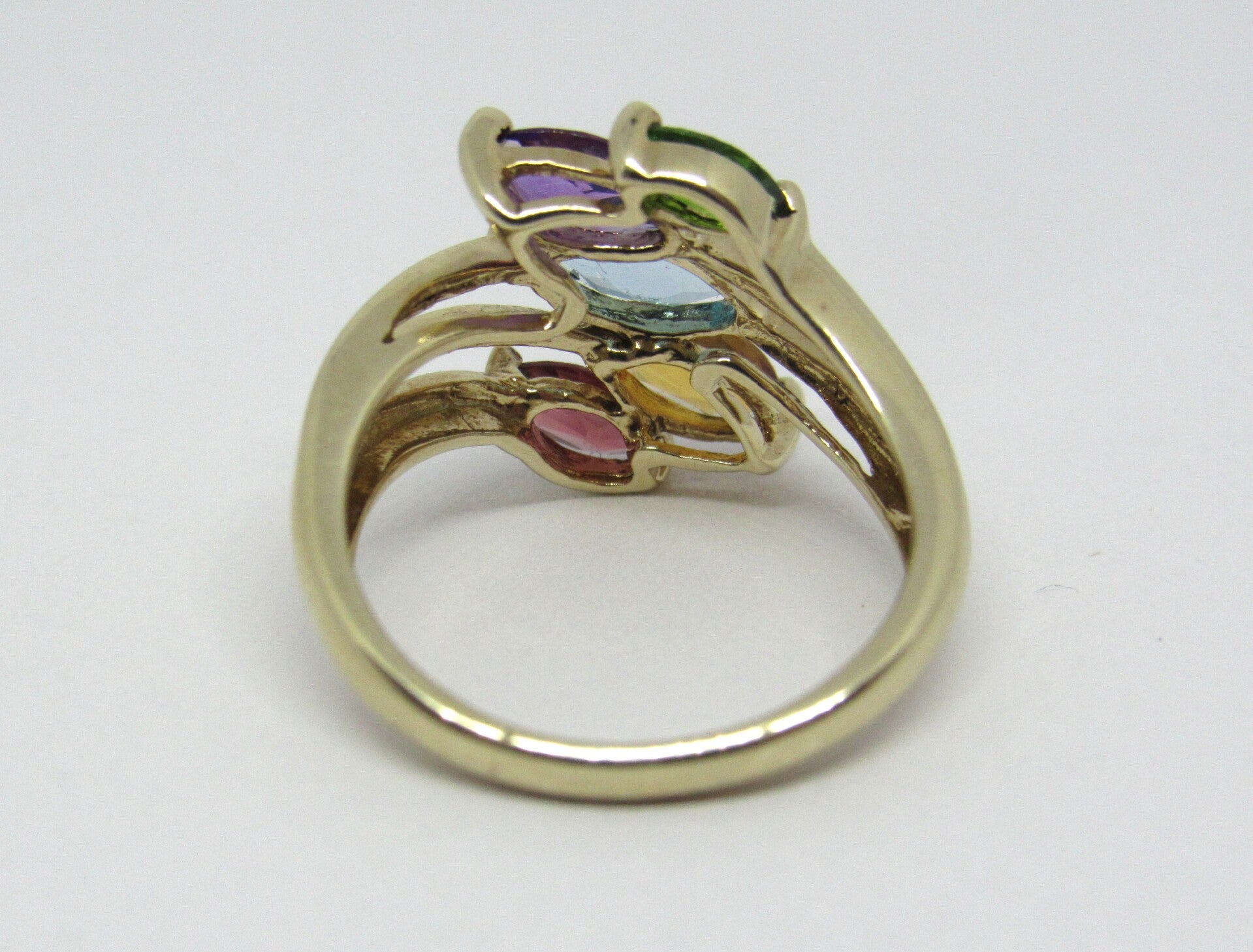 9 Karaat. Multistone ring met, granaat,amethist,topaas,citrien en peridot. Maat: 16.3. Nr: 19/A265.