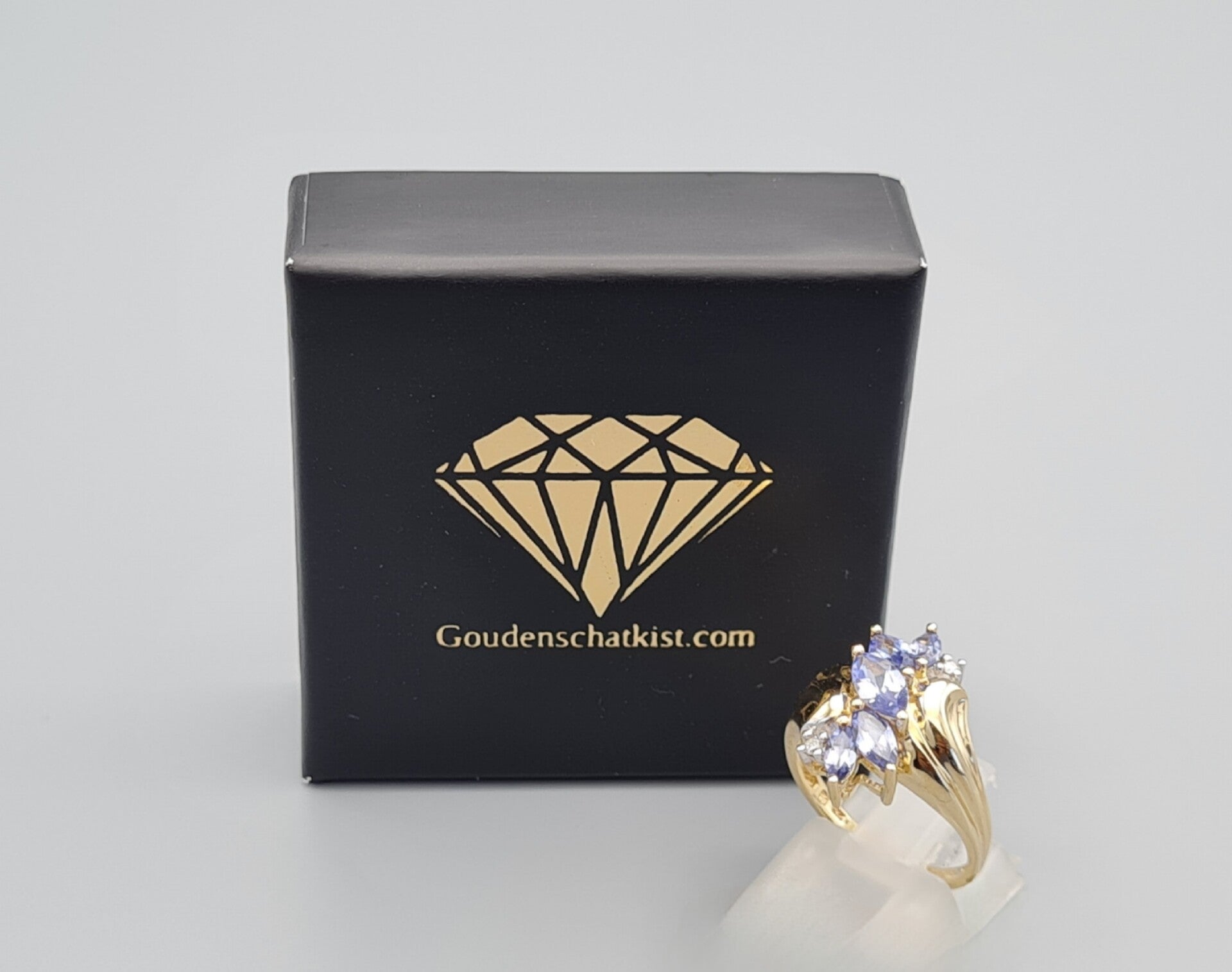 Vintage ring met edelsteen tanzaniet en diamant. 2022/566.