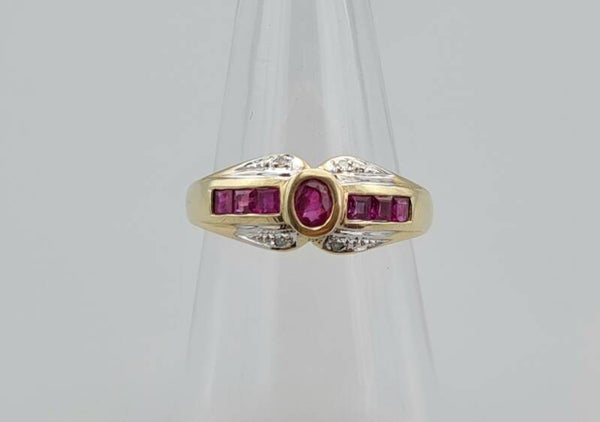 Vintage ring met edelsteen robijn en diamant. 2022/575.