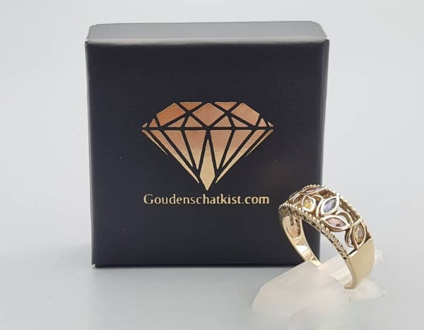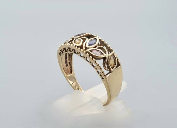 Vintage ring met citrien, rozenkwarts en tanzaniet. Maat:18.5. 2022/641.