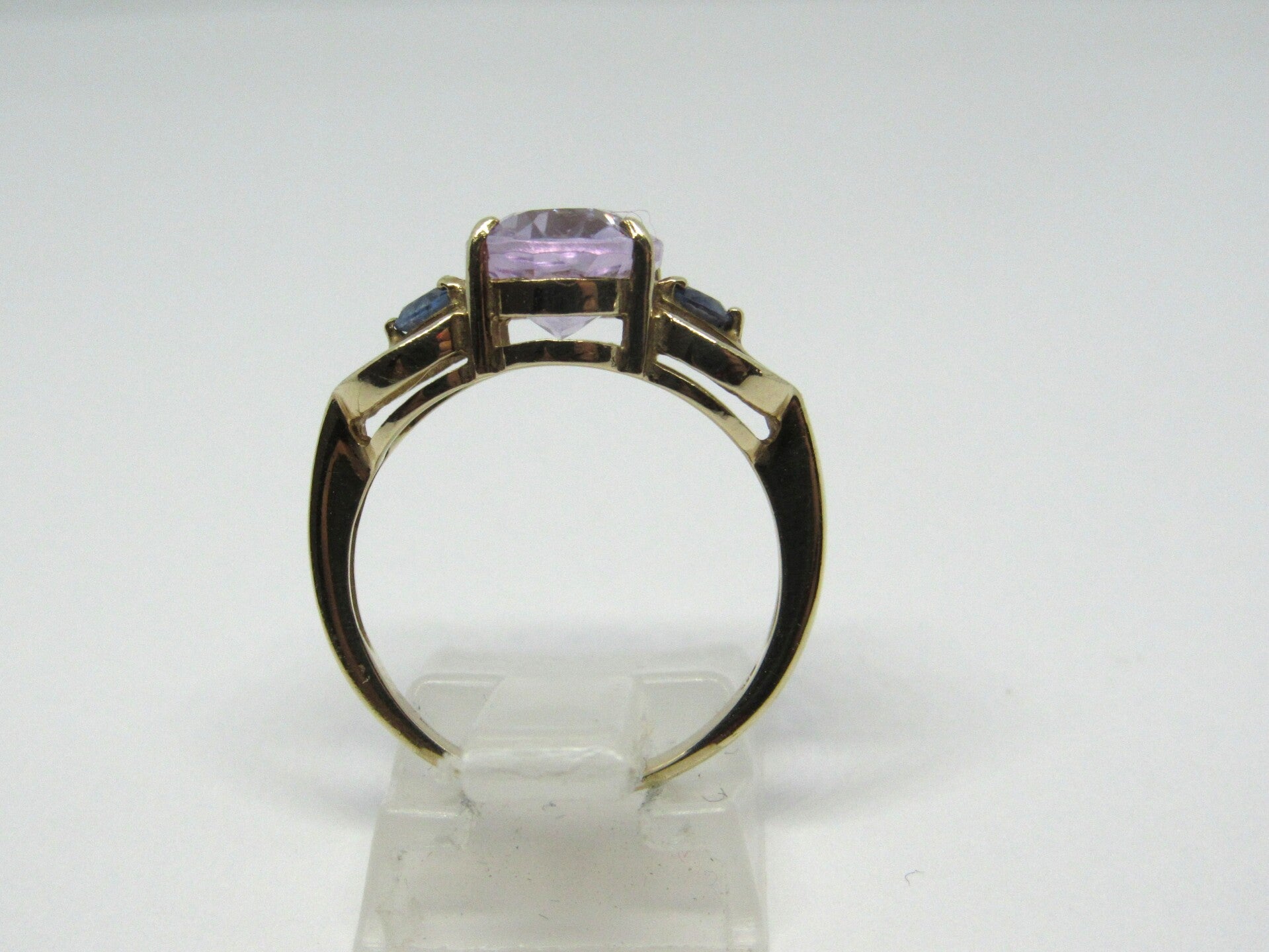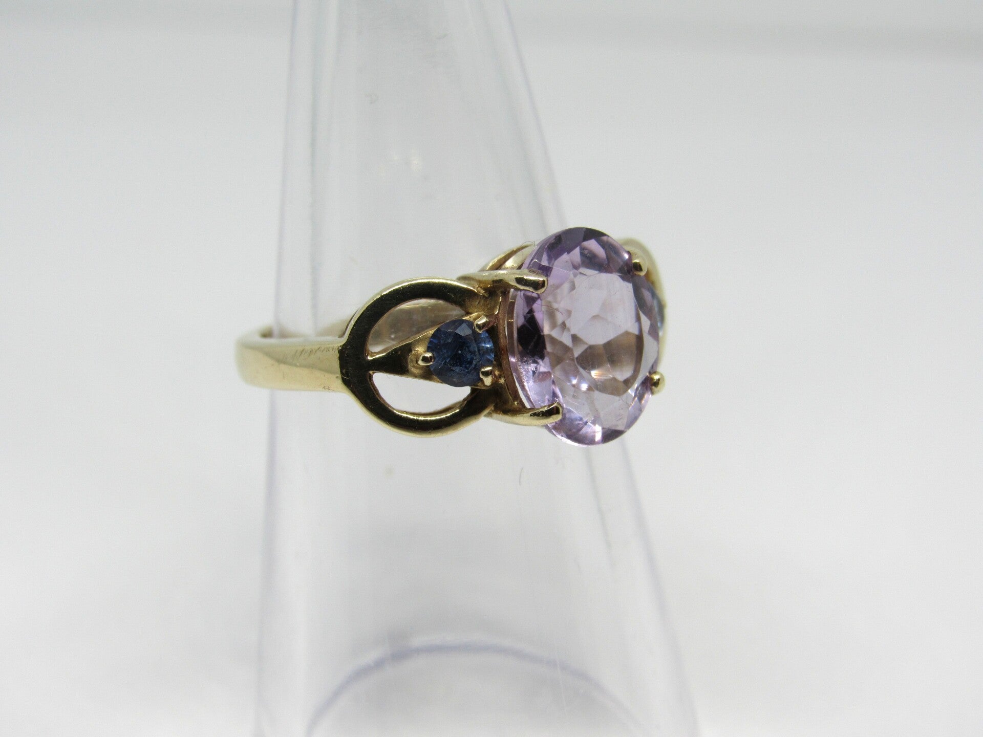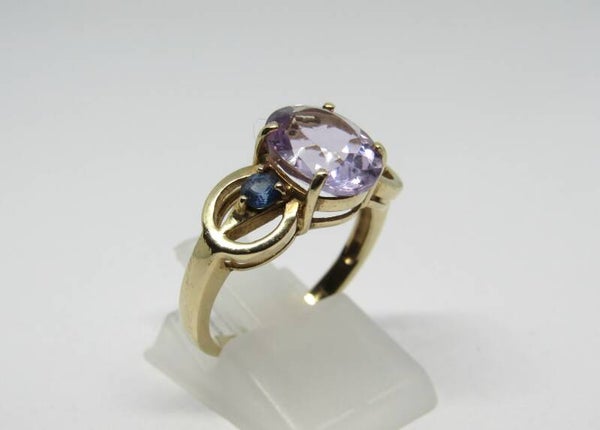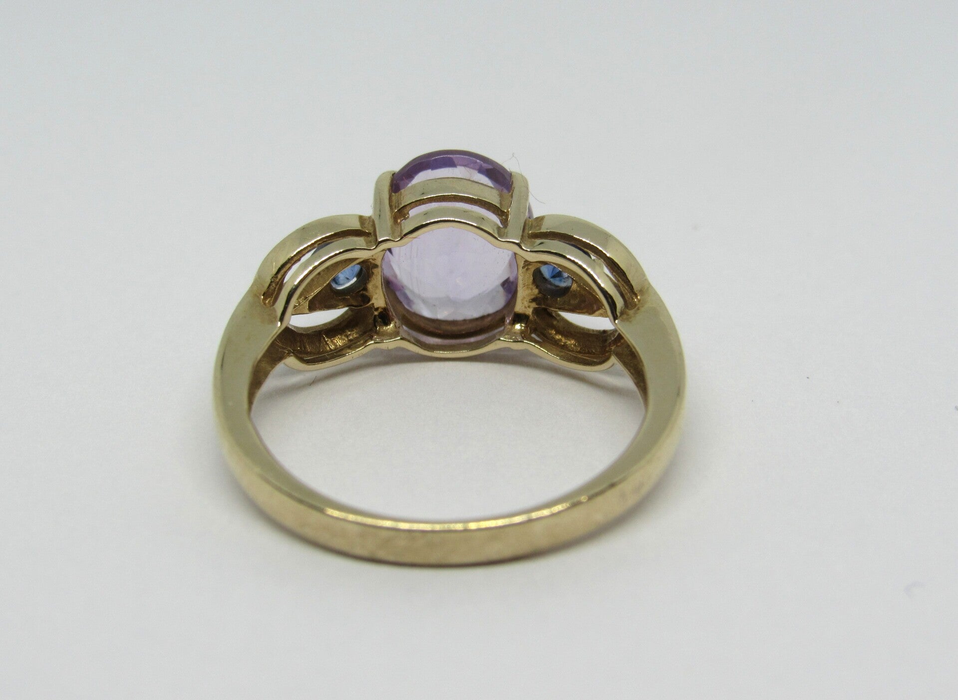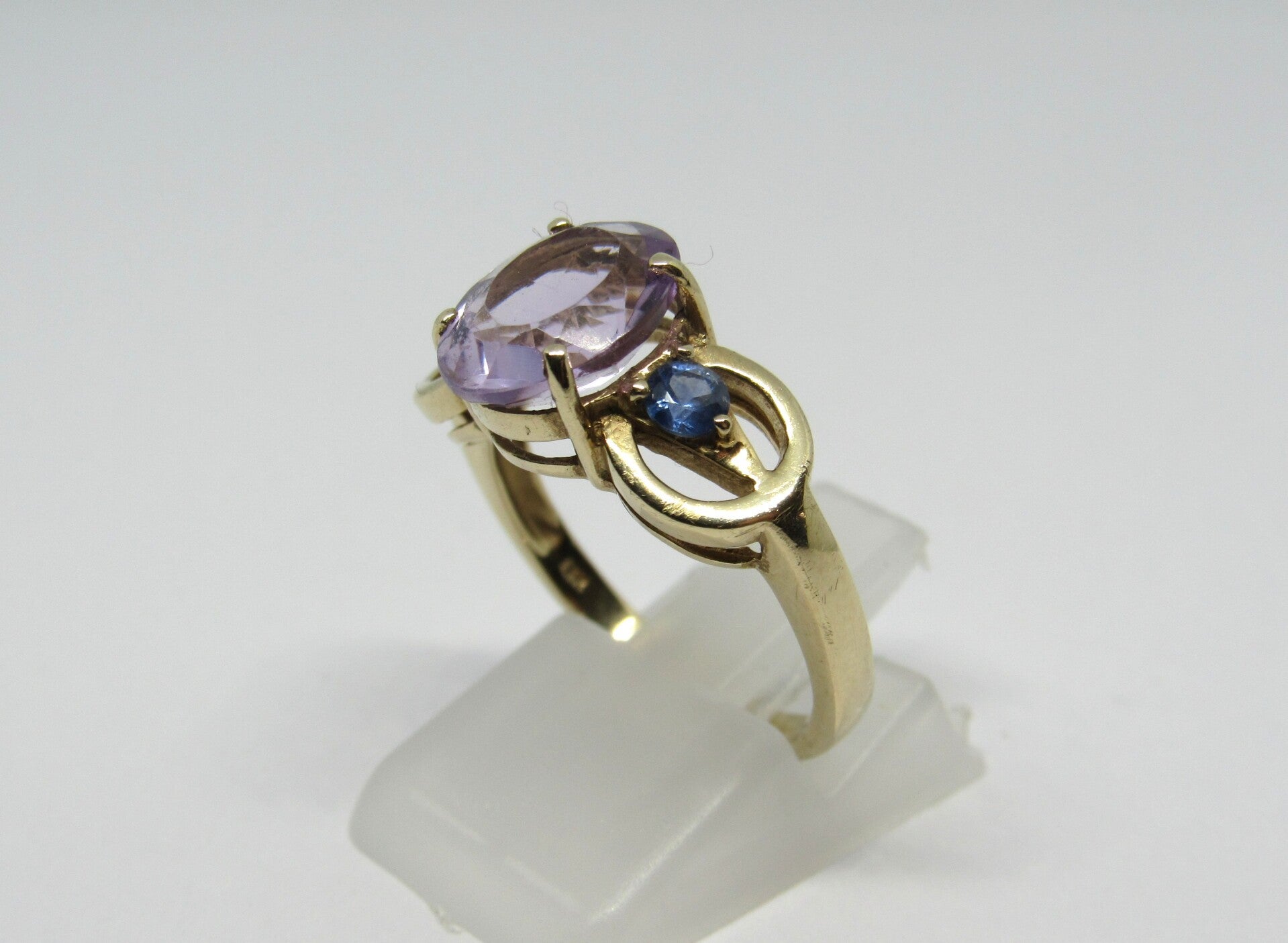9 Karaat. Ring met amethist en tanzaniet. Maat: 17.25. Nr: 19/280.