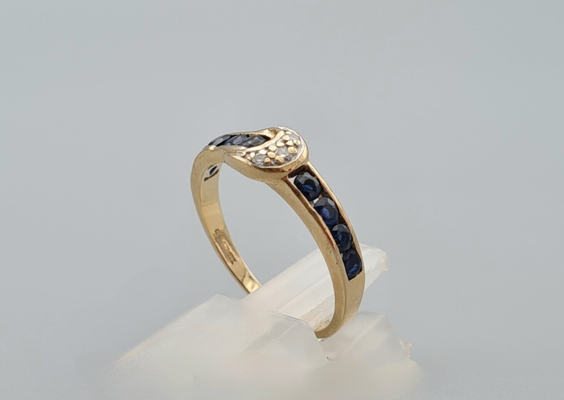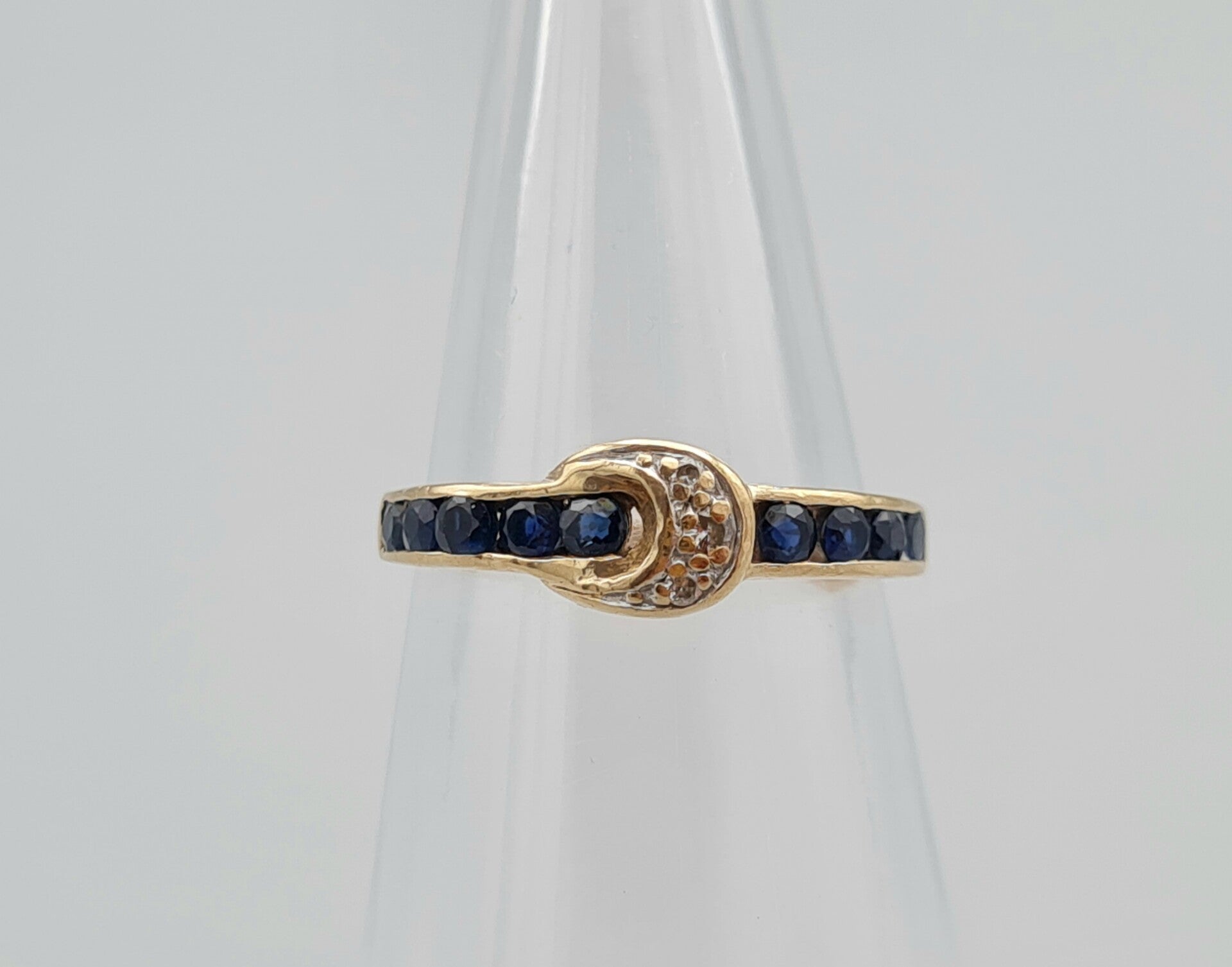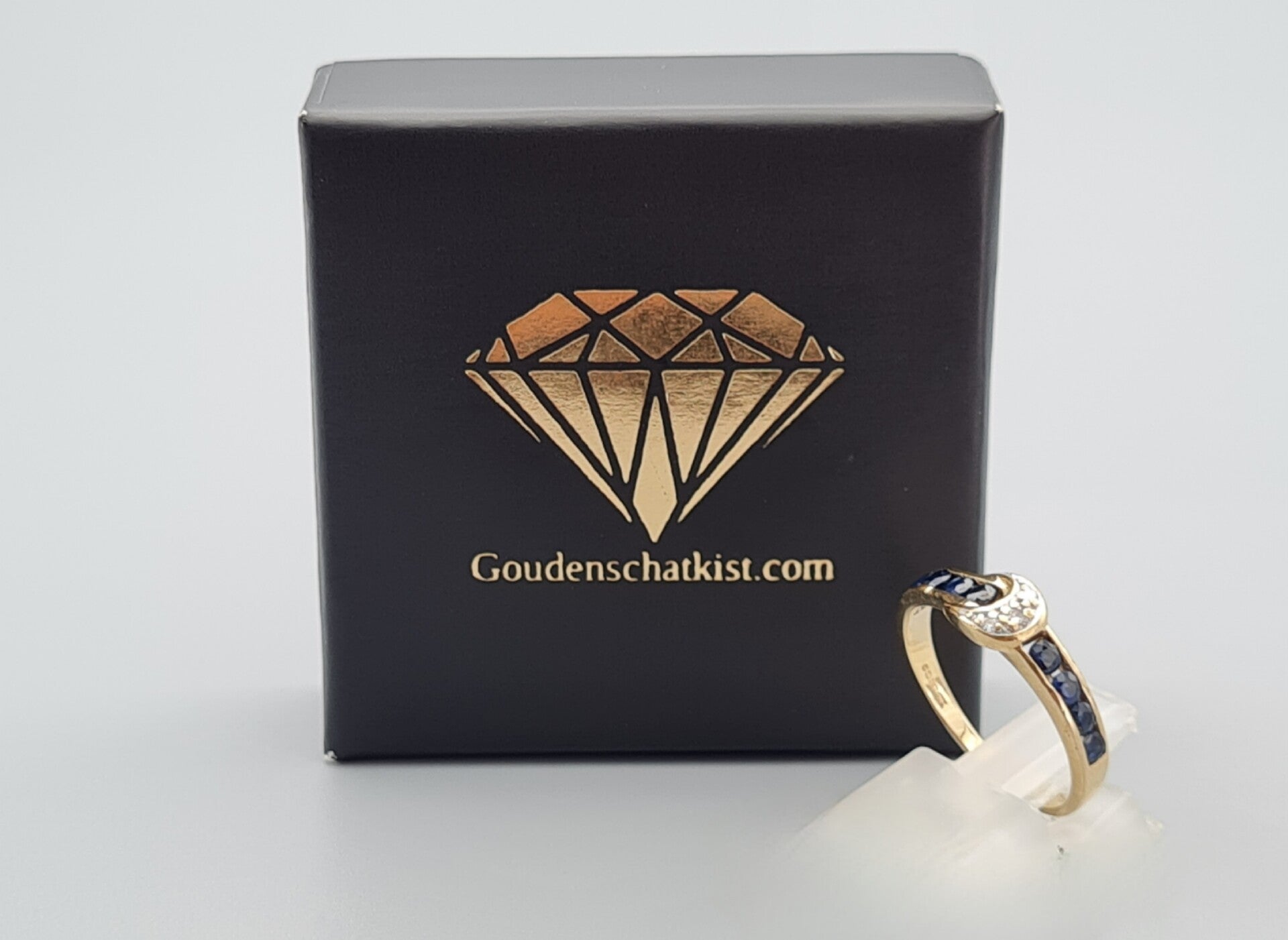 Vintage ring met saffier en diamant. Maat: 16.75. 2022/662.