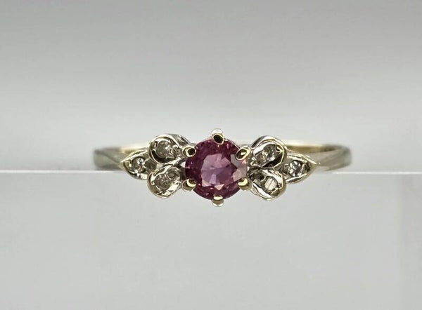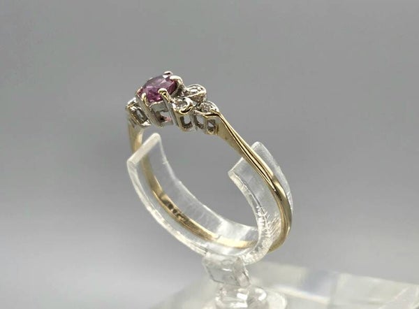 Vintage ring met edelsteen roze saffier en diamant. 2026/232.