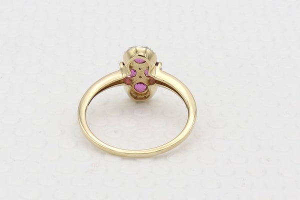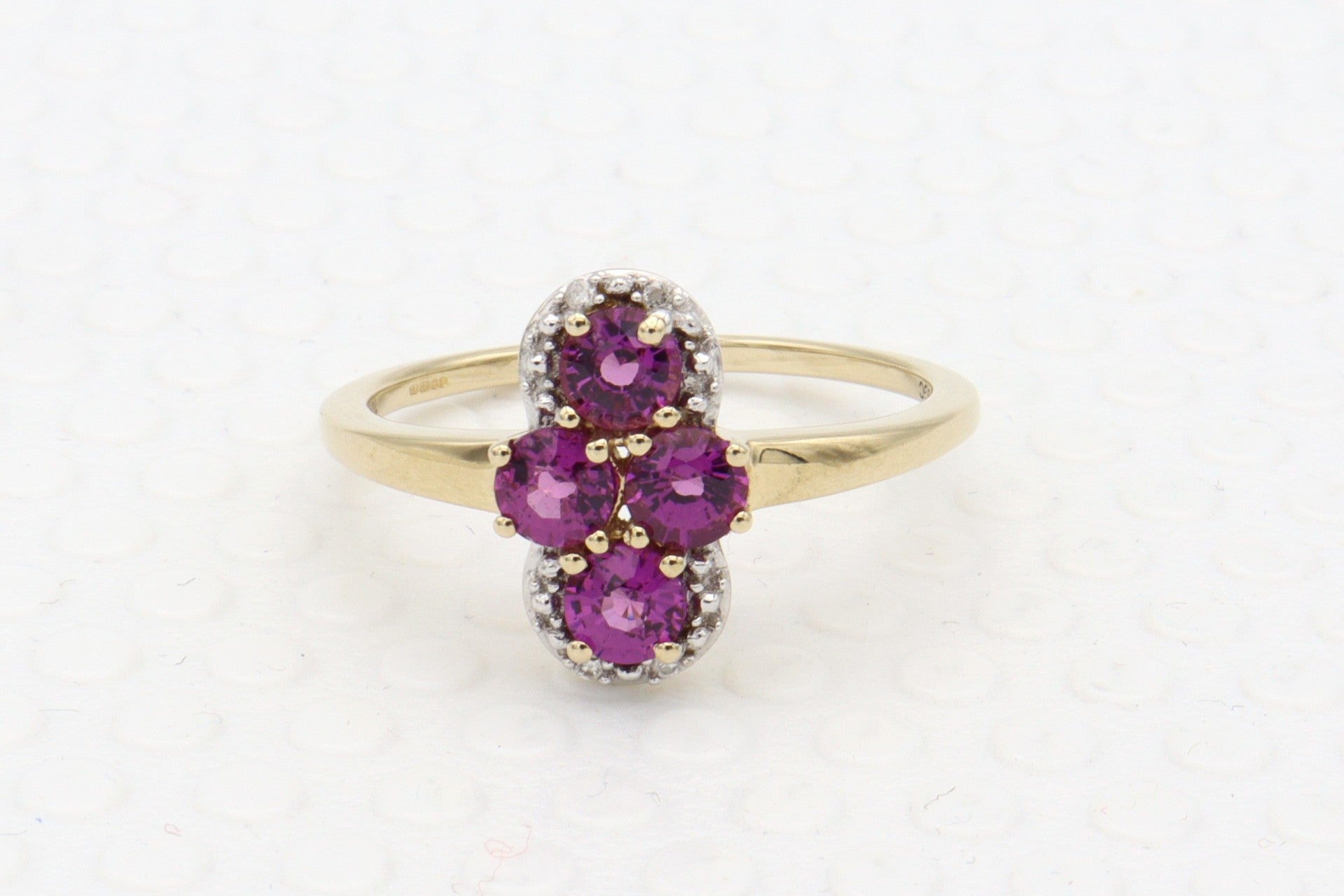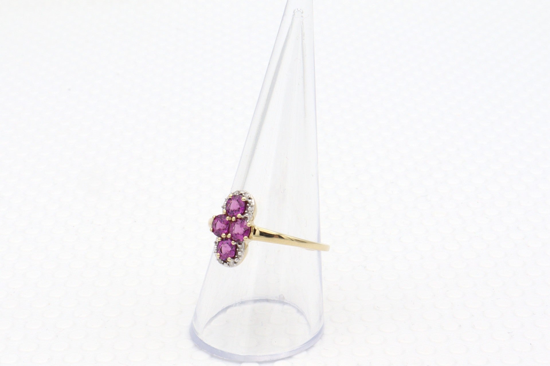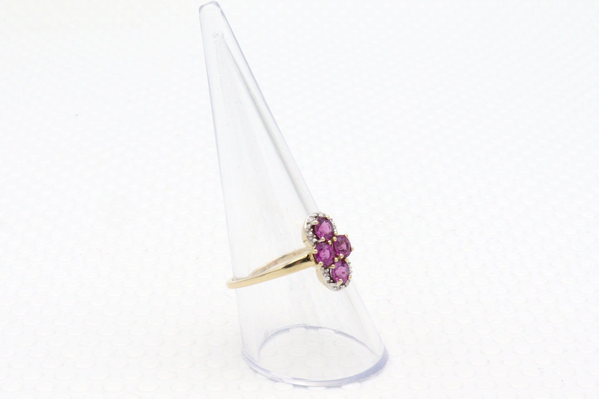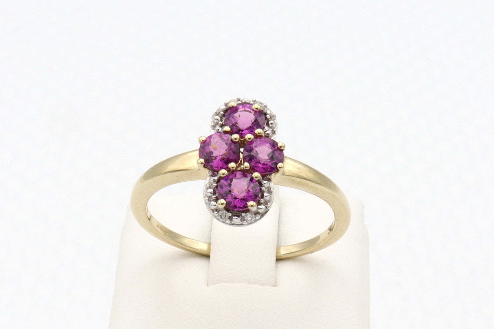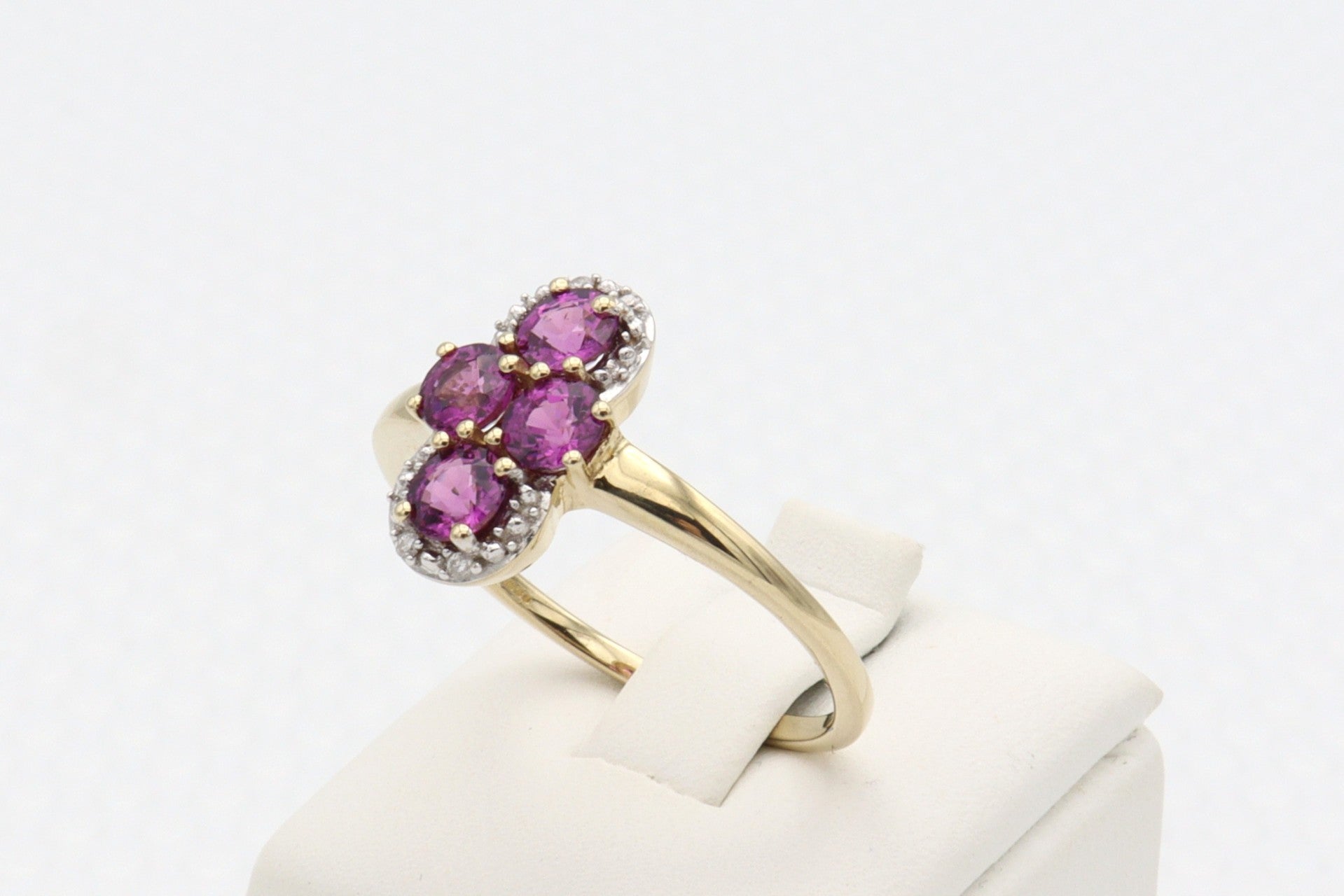 9 Karaat. Vintage ring met granaat en diamant. Maat: 19. Nr:2020/258.