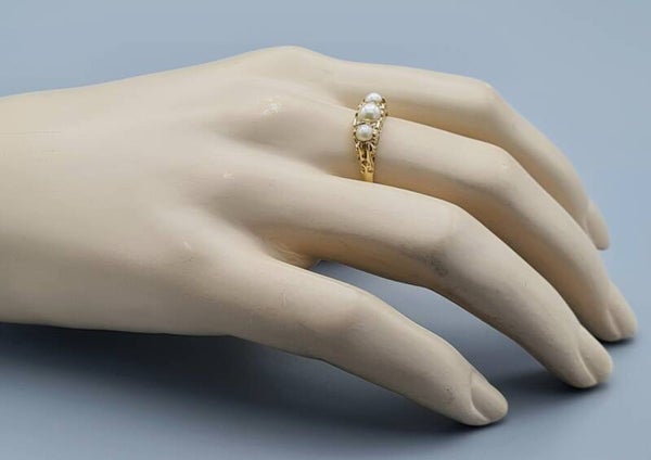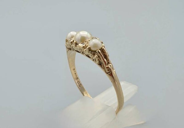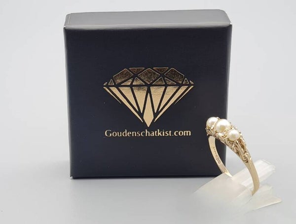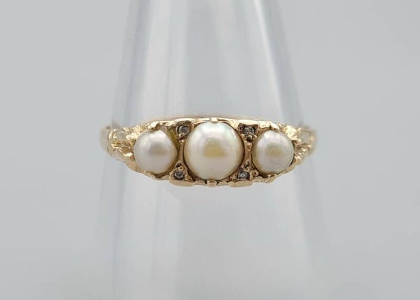 Vintage ring met parel en diamant. Maat: 19.7. 2022/690.