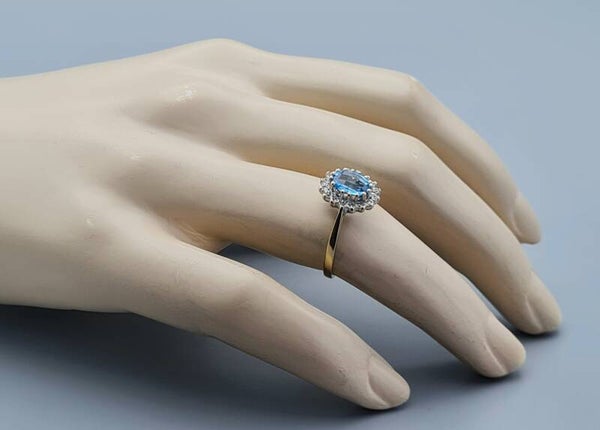 Vintage ring met topaas en diamant. Maat: 17.3. 2022/692.