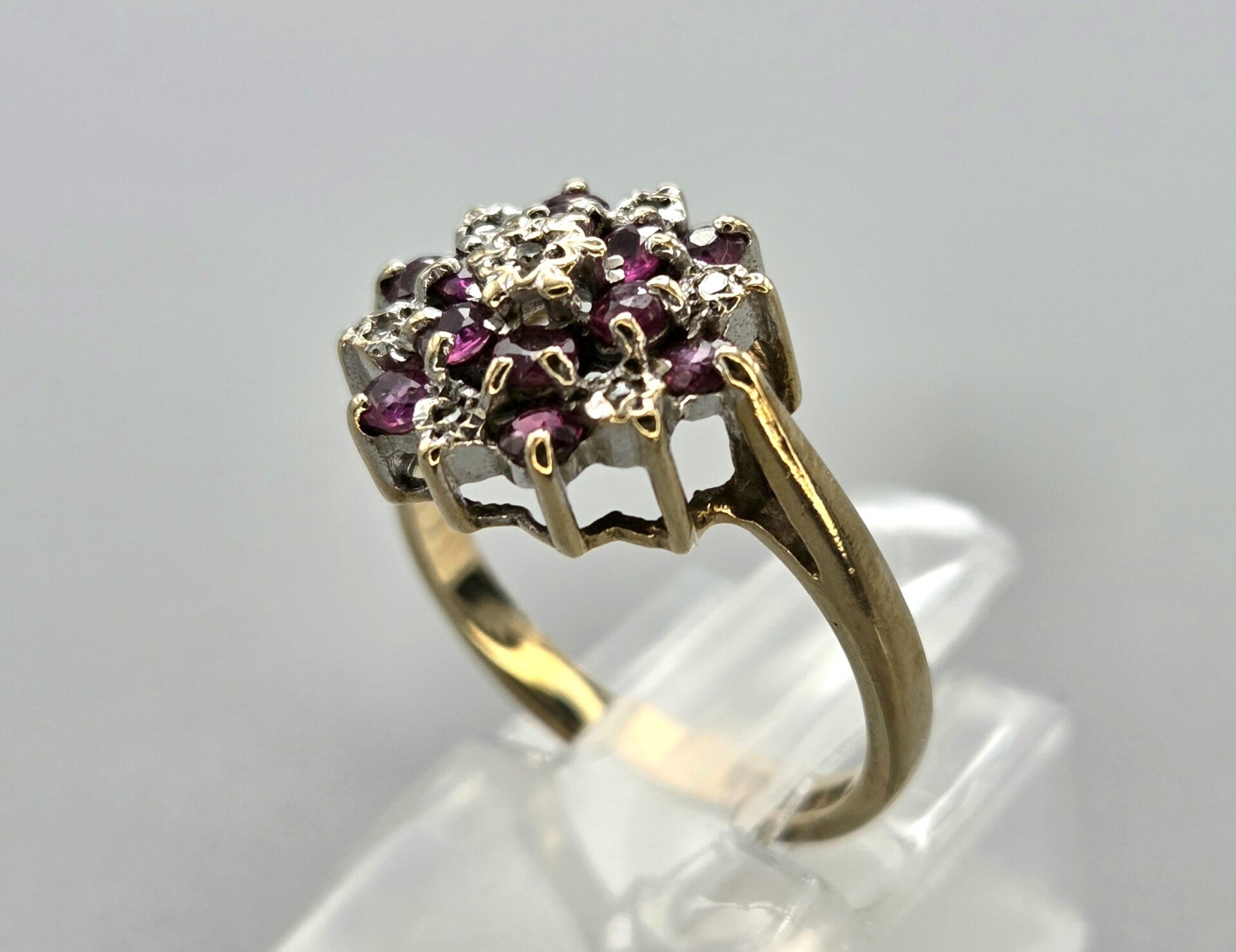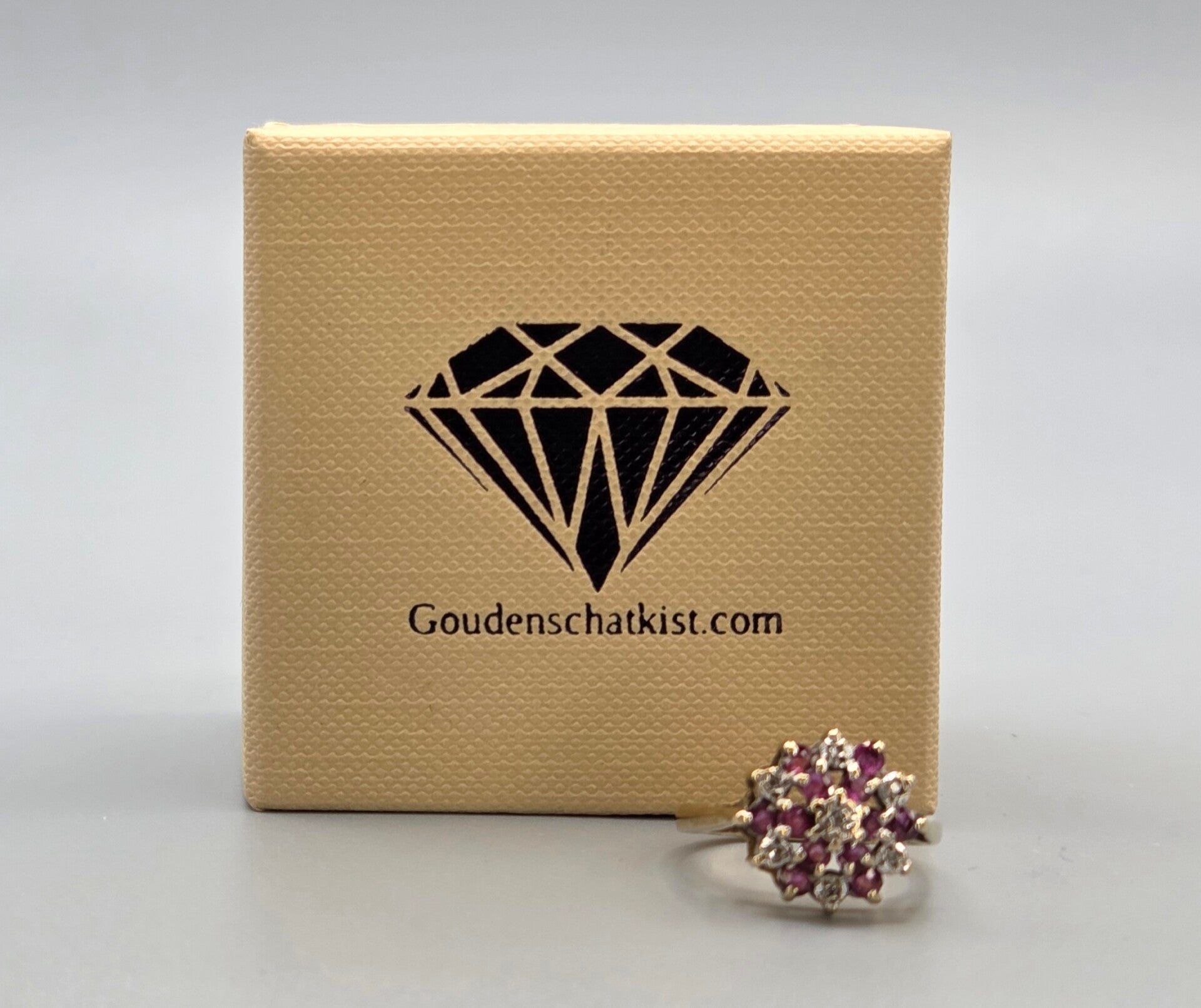 Vintage ring met edelsteen robijn en diamant. 2026/236.