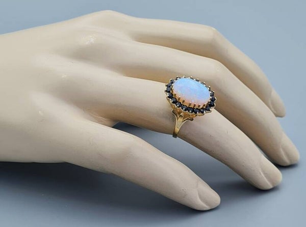 Vintage ring met edelsteen opaal en saffier. 2022/725.