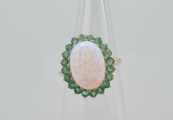Vintage ring met edelsteen opaal en smaragd. 2022/734