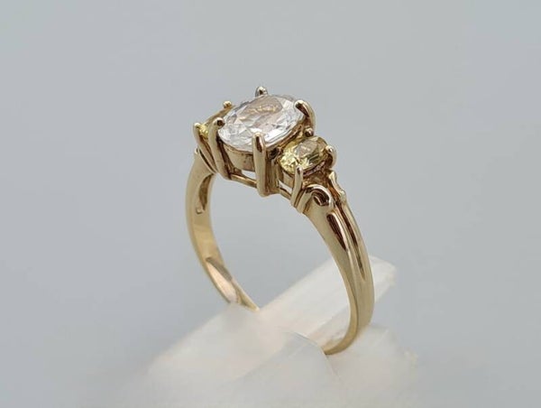 Vintage ring met edelsteen witte topaas en citrien. 2022/752.