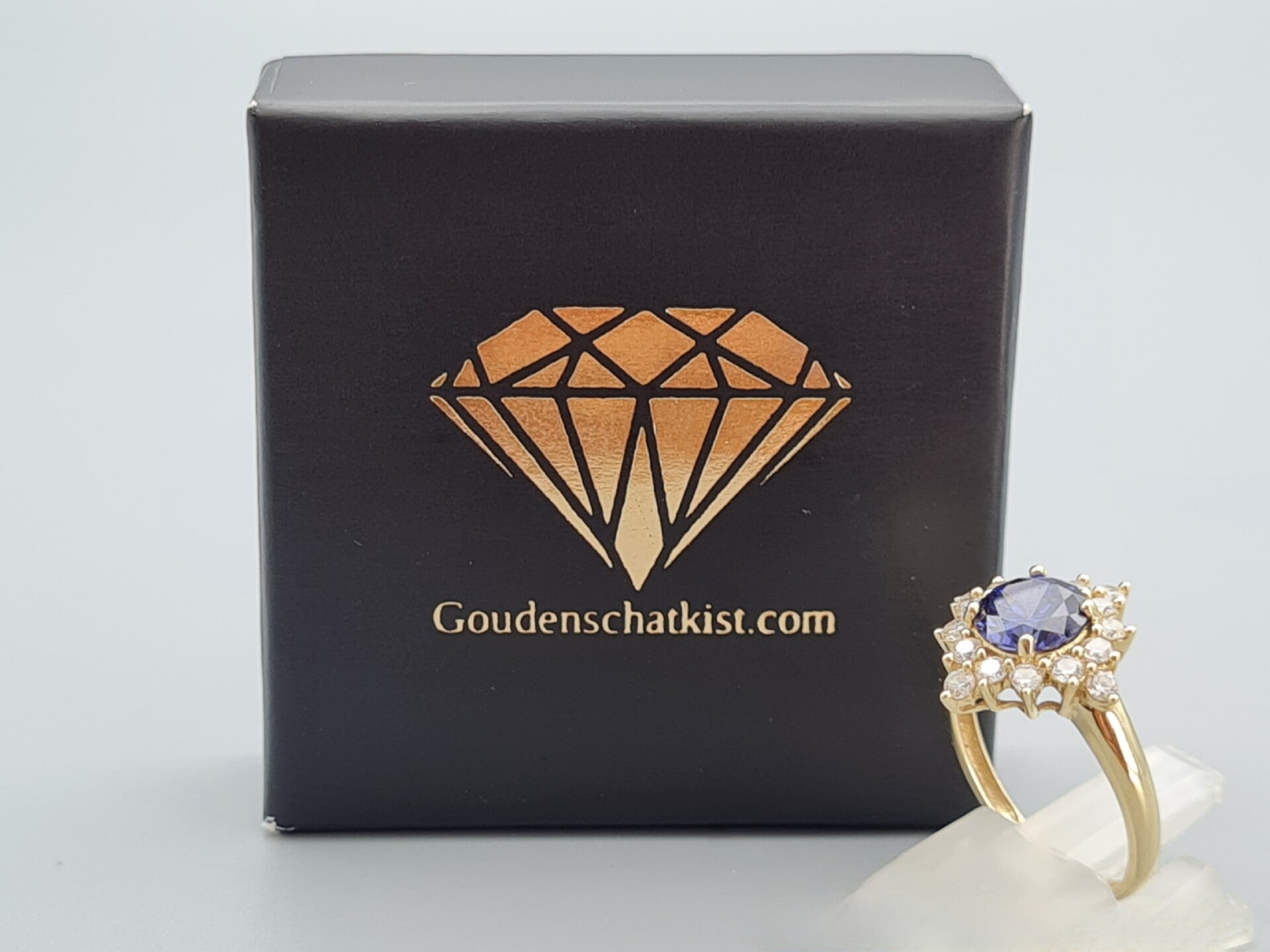 Vintage ring met edelsteen tanzaniet en zirkonia. 2022/758.