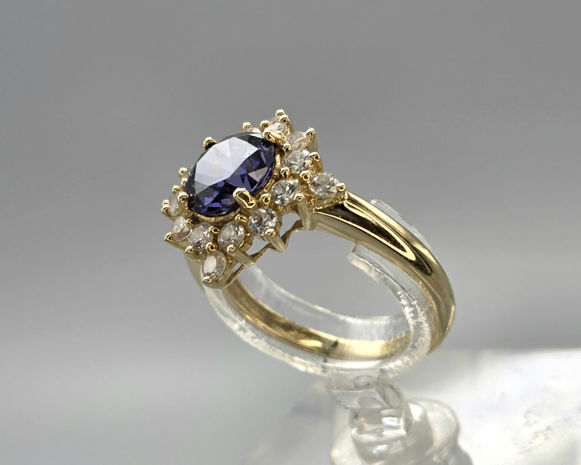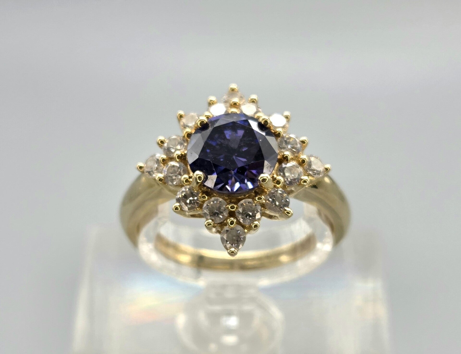 Vintage ring met edelsteen tanzaniet en zirkonia. 2026/234.