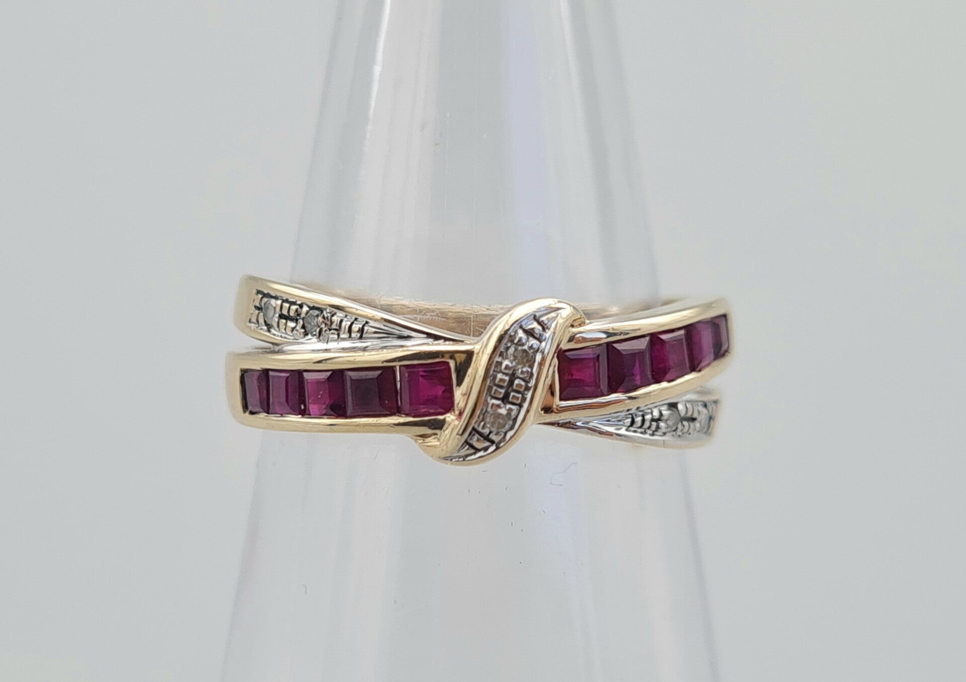 Vintage ring met edelsteen robijn en diamant. 2022/769.
