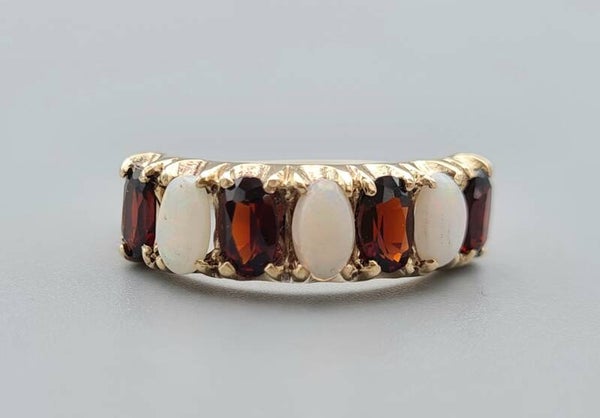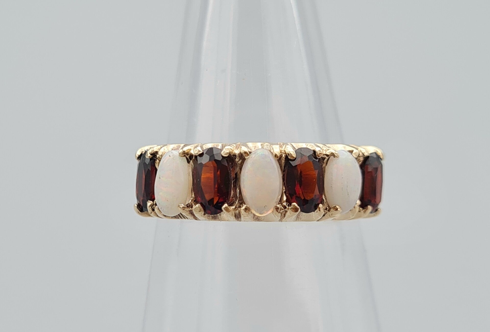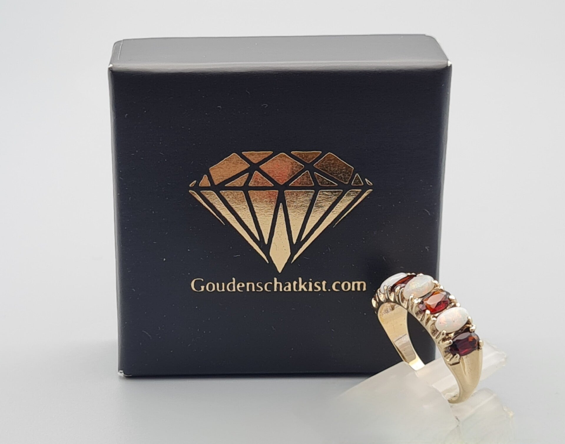 Vintage ring met edelsteen opaal en granaat. 2022/810