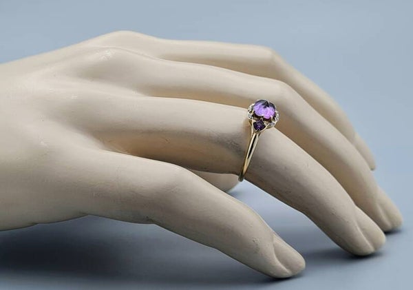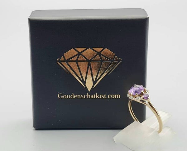 Vintage ring met edelsteen amethist en diamant. 2022/815.