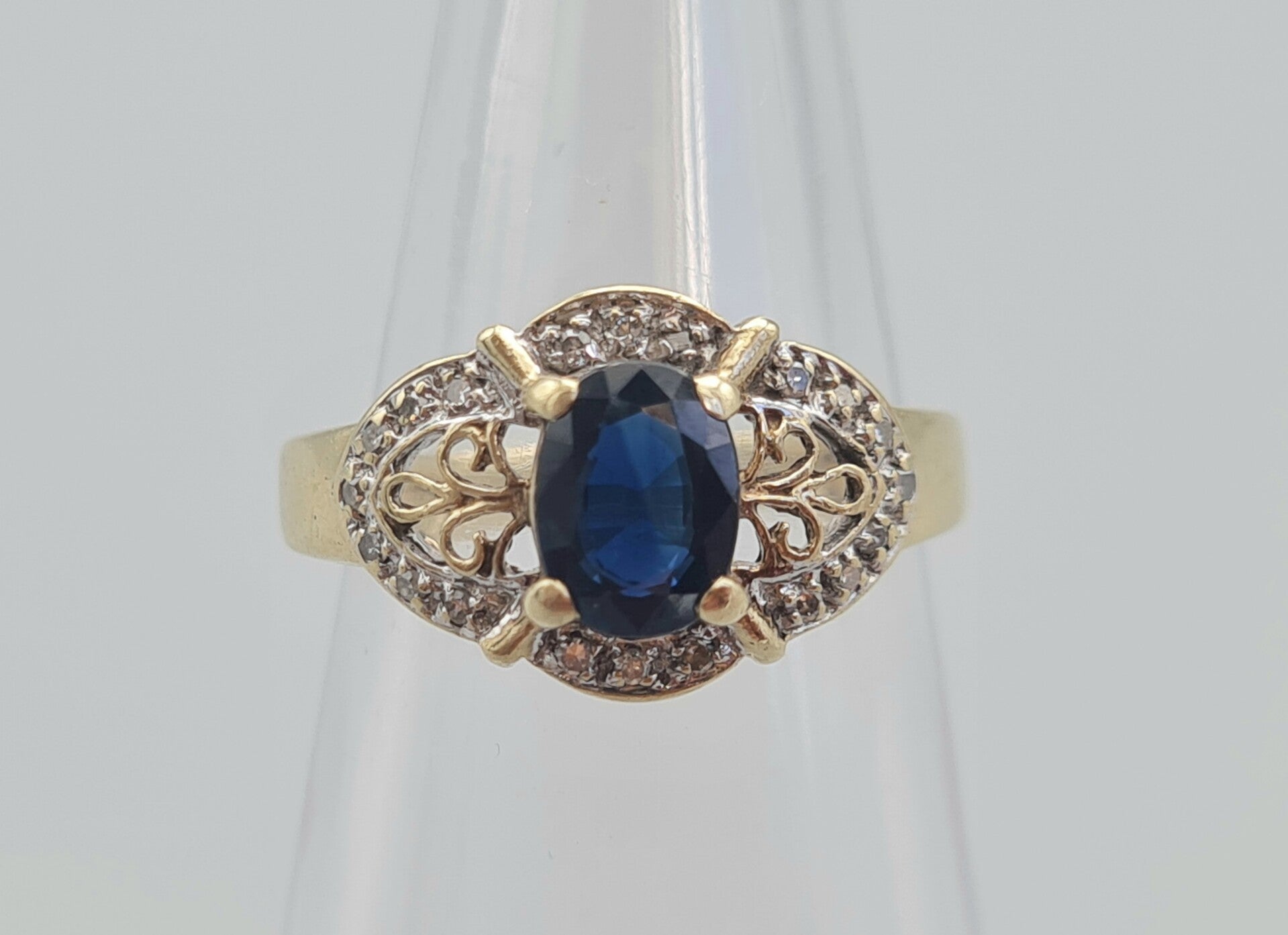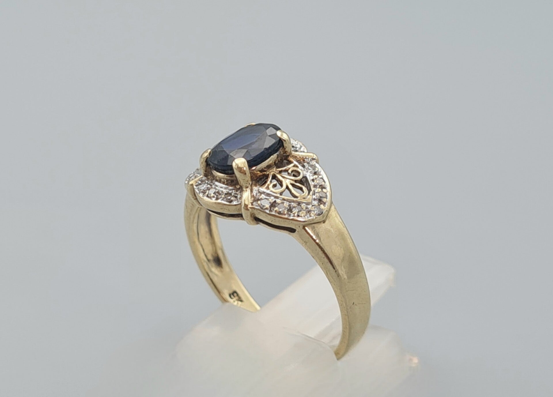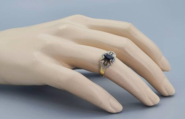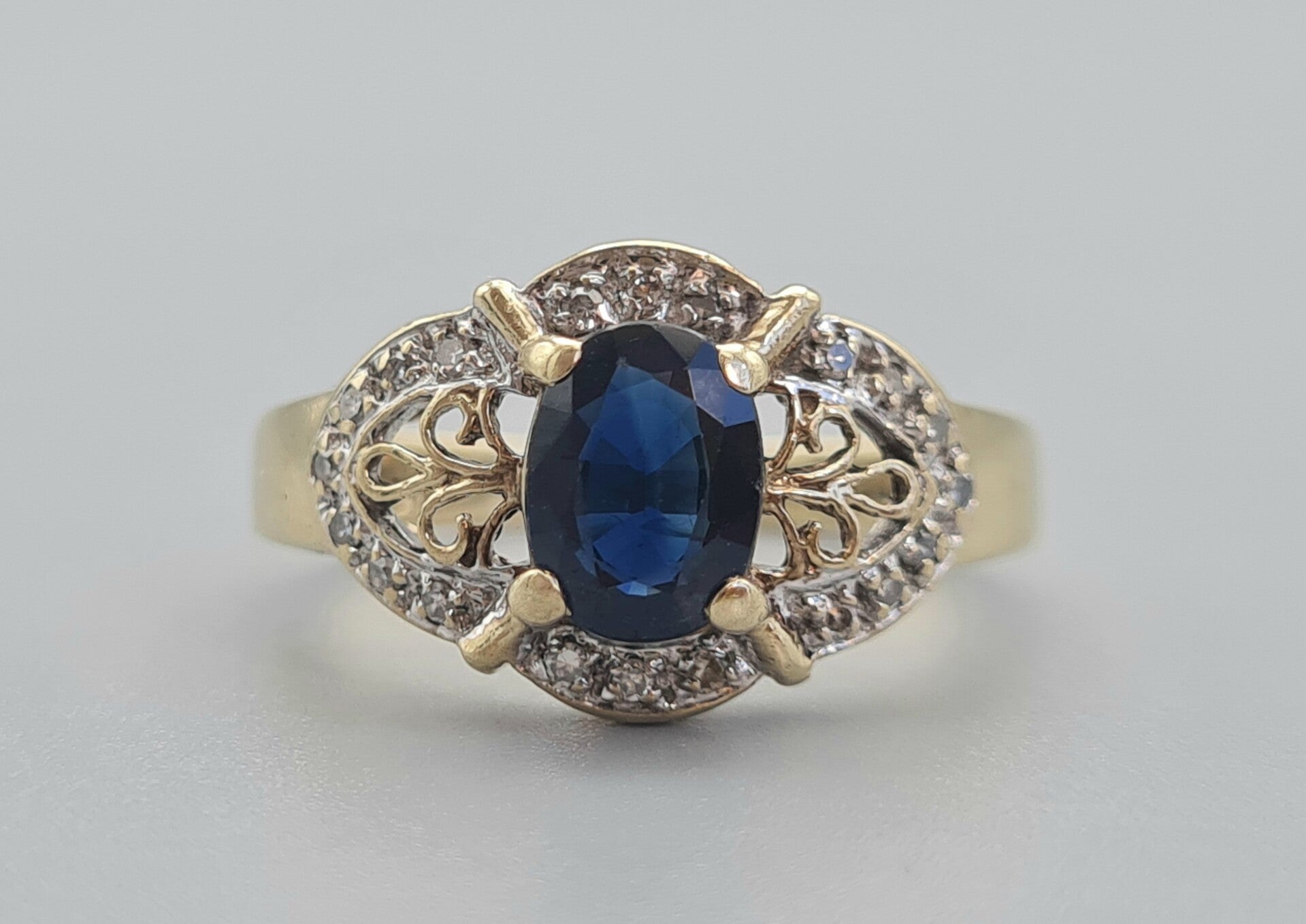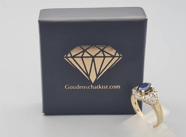Vintage bi-color ring met edelsteen saffier en diamant. 2022/834.