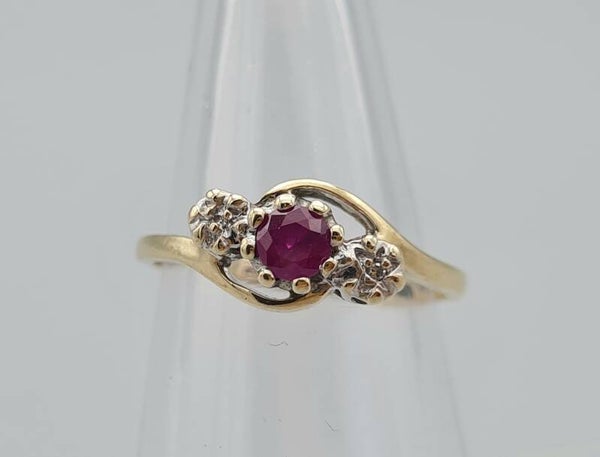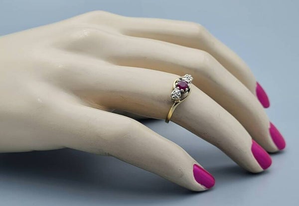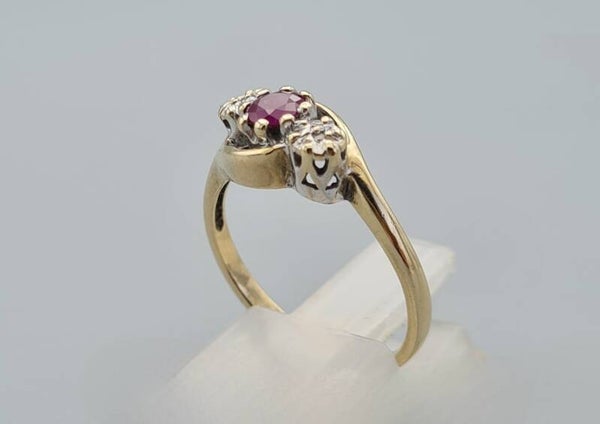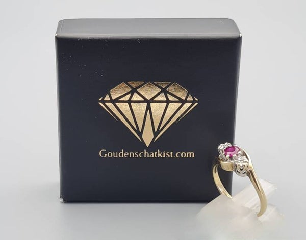 Vintage ring met edelsteen robijn en diamant. 2022/861.