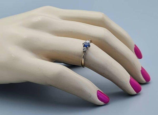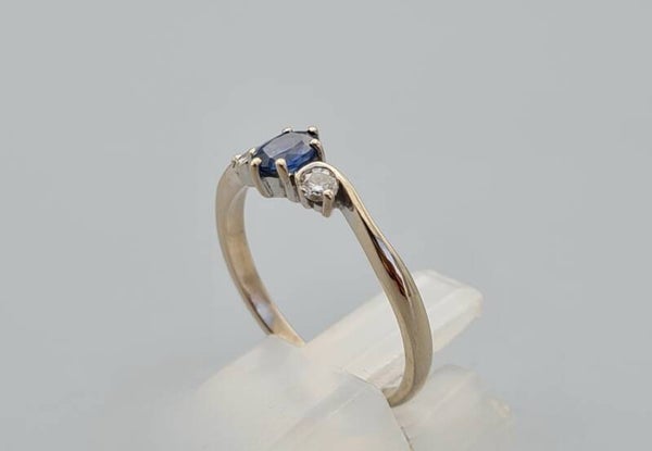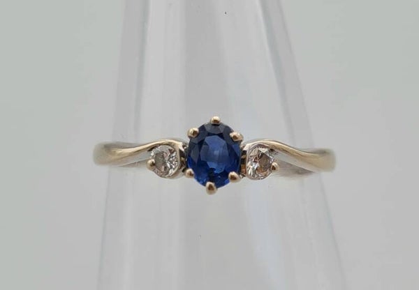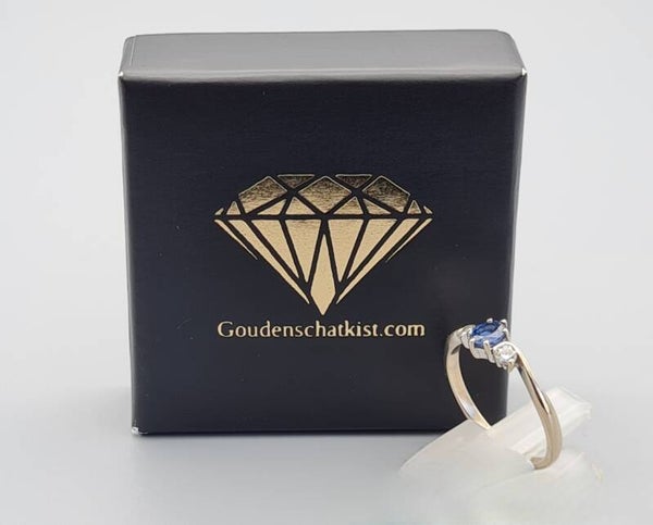 Vintage ring met edelsteen saffier en diamant. 2022/873.