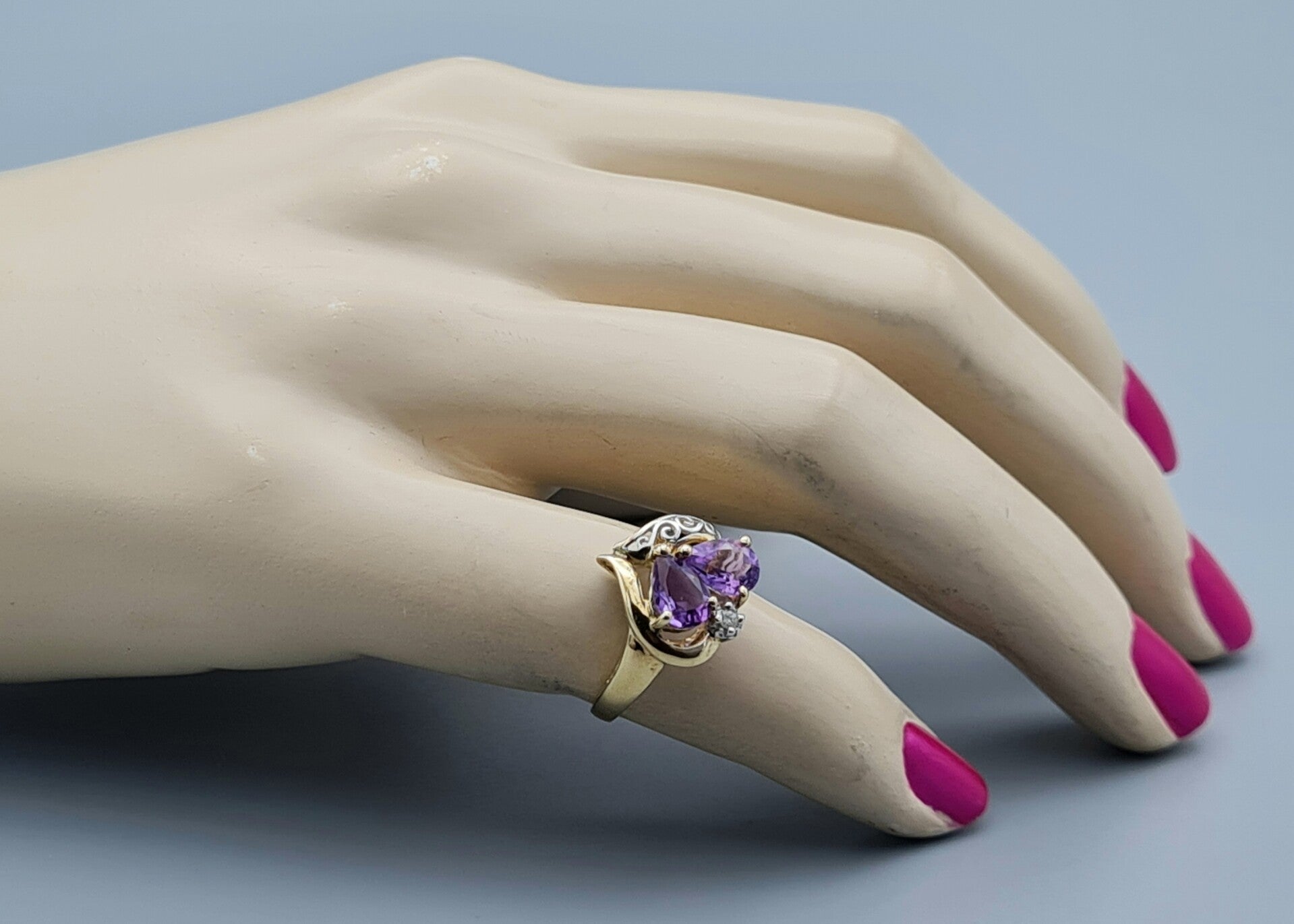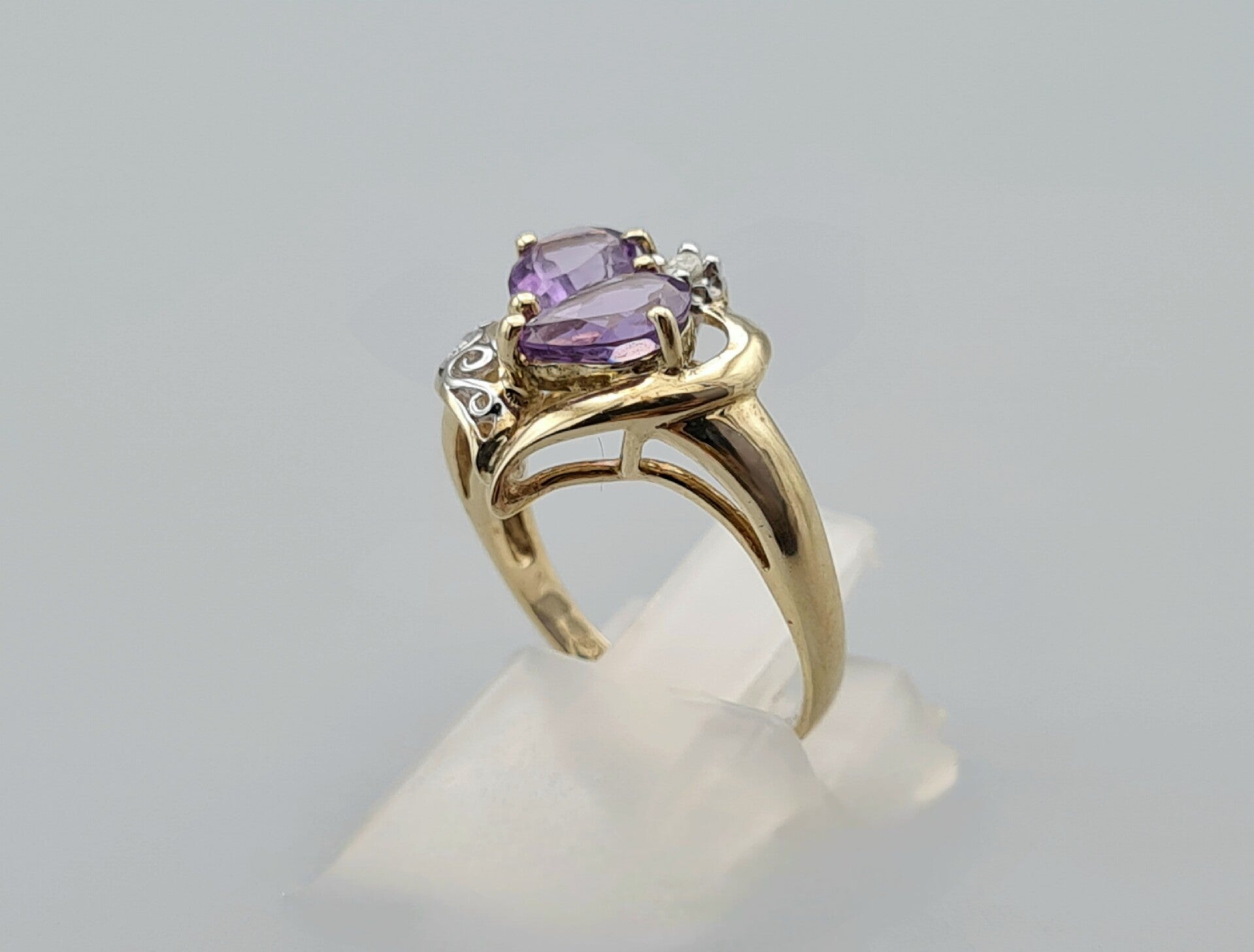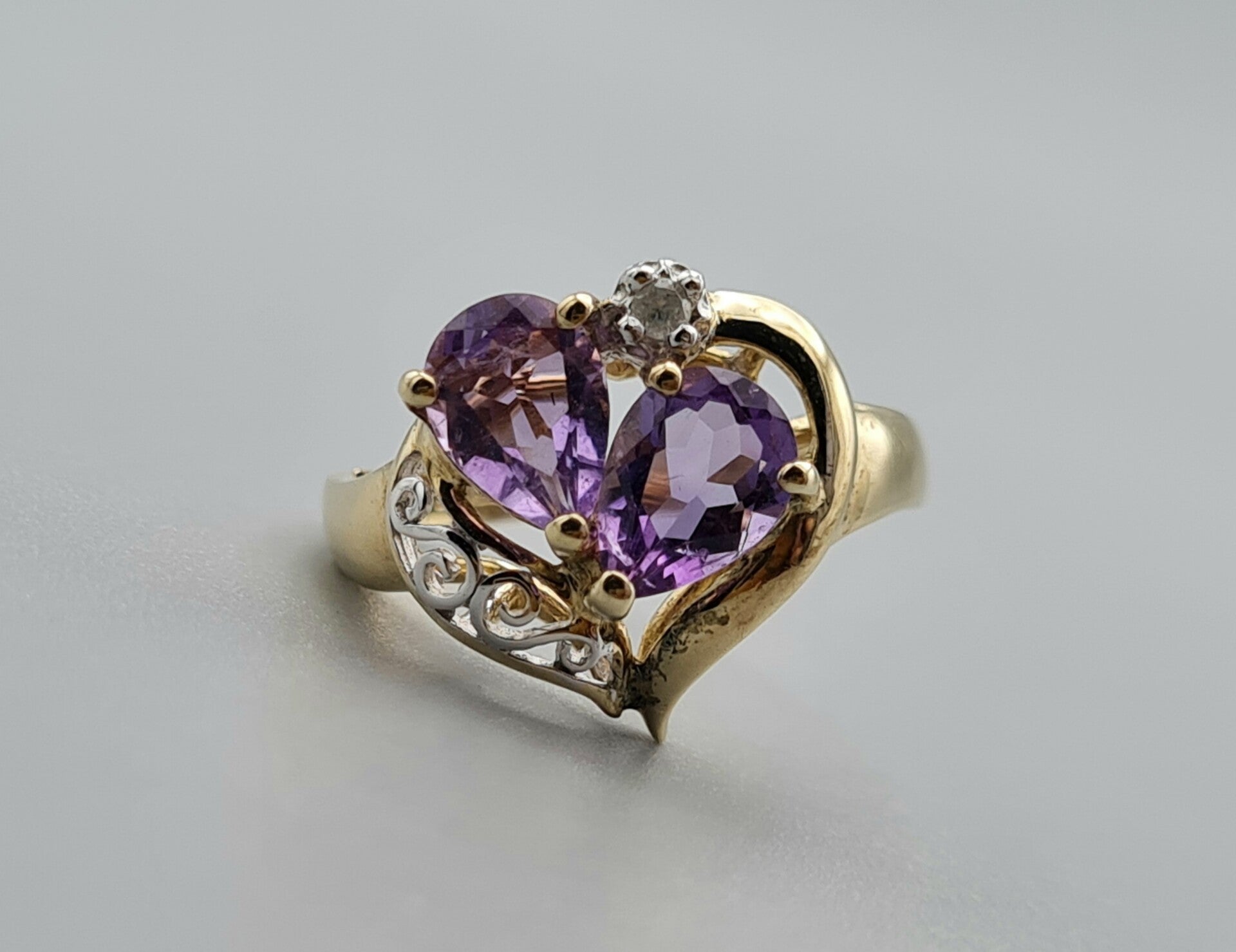 Vintage ring met edelsteen amethist en diamant. 2022/960